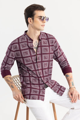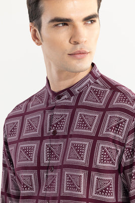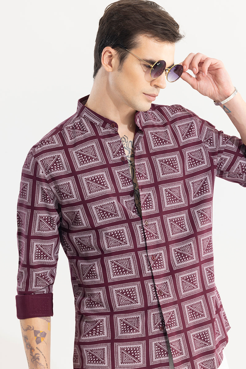 A versatile choice for any occasion, the Gridart Maroon Shirt features a stylish print and comfortable full sleeves. Perfect for any casual outings.