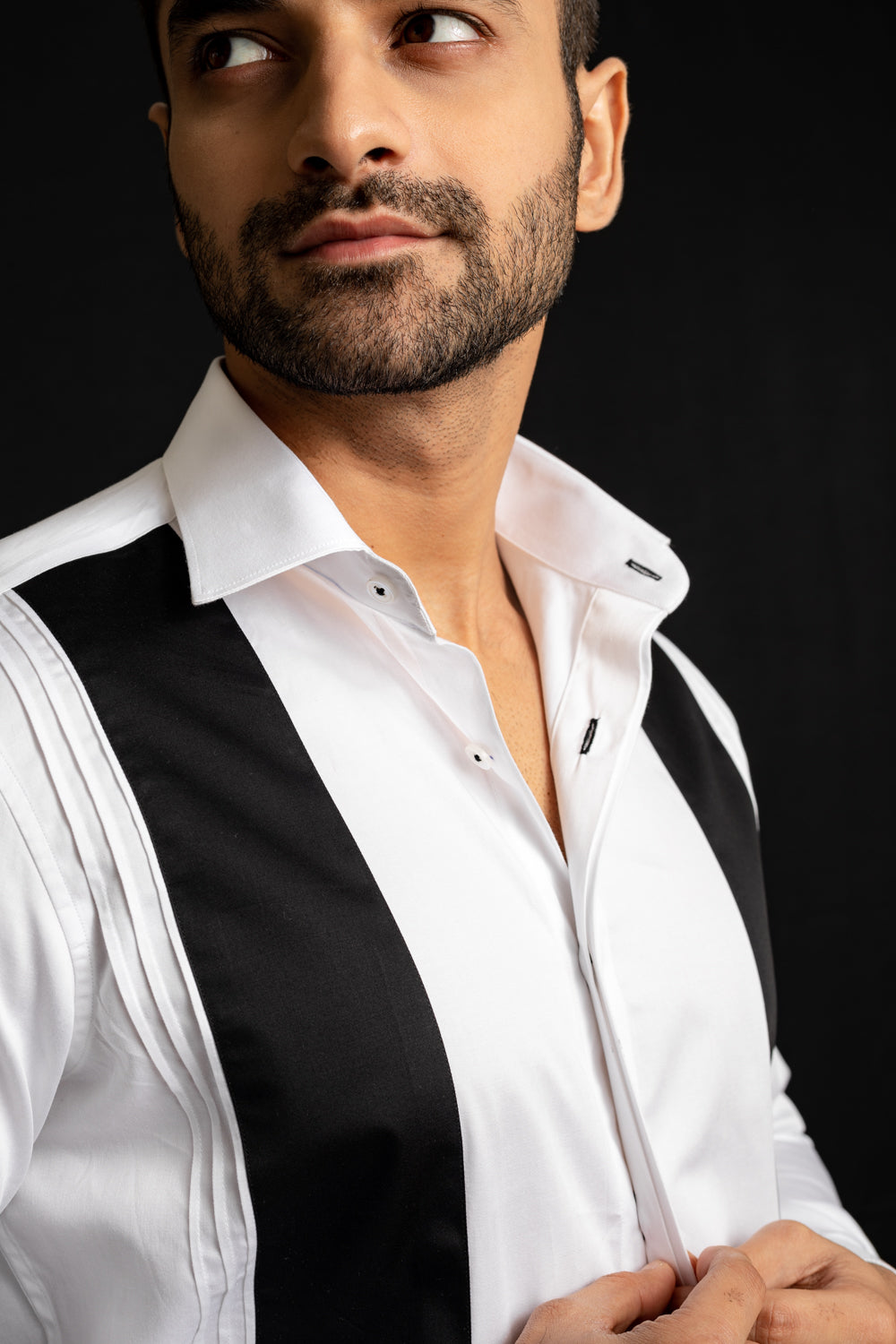 Collar: The shirt has a Mid Spread Collar with fine interlining to keep it sturdy and sharp.