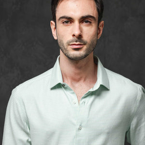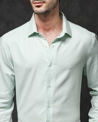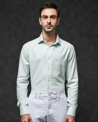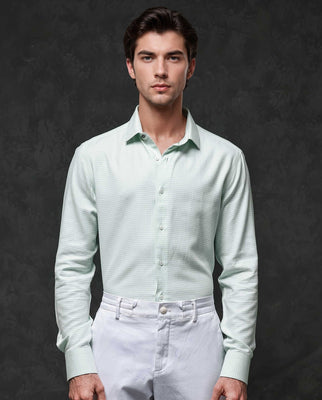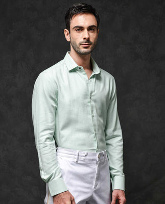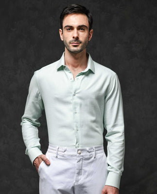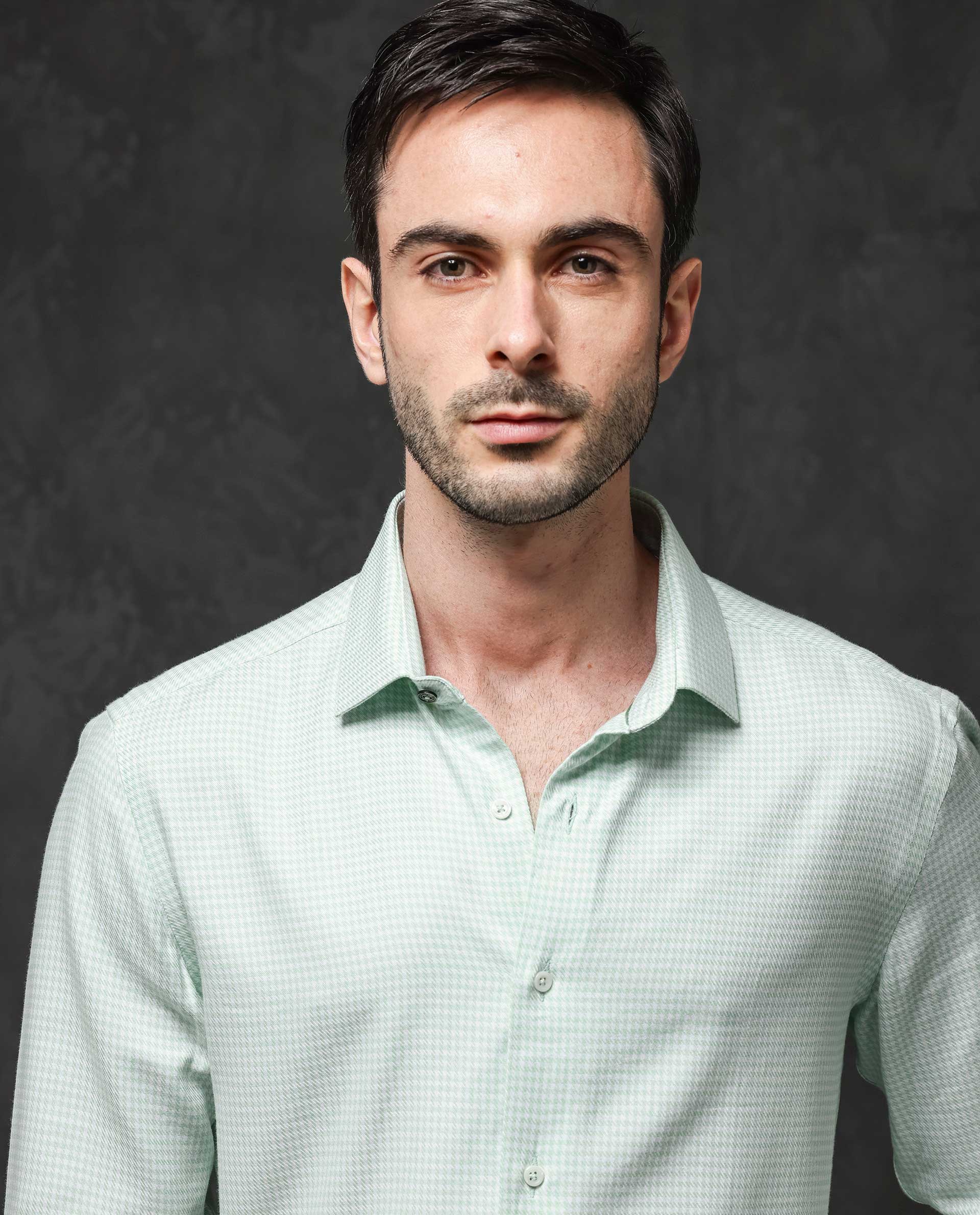 Rare Rabbit Mens Kinate Pastel Green Full Sleeve Solid Houndstooth Check Shirt