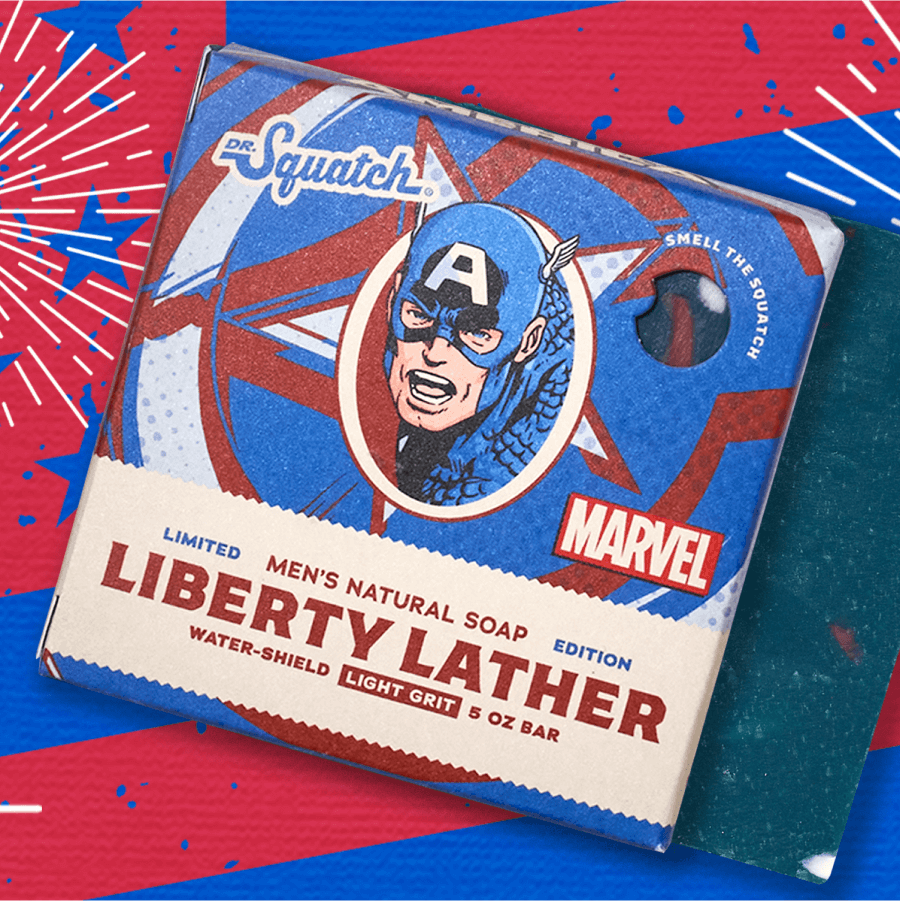 Join the fight for justice (and a better shower) with this heroic bricc inspired by Captain America. This fearless lather features a courageous blend of conditioning Water-Shield, exfoliating Pumice, and antioxidant Serviceberry, plus energizing scents of citrus and cedarwood.
