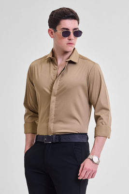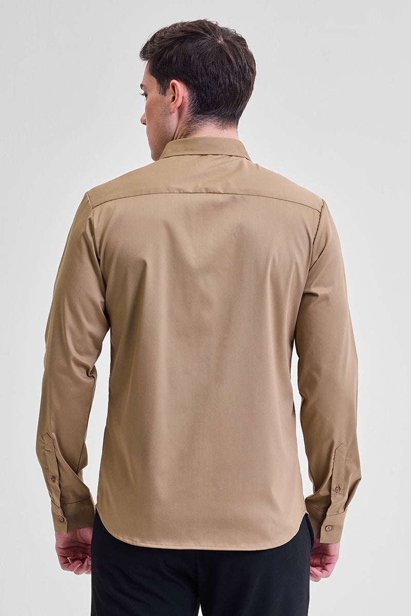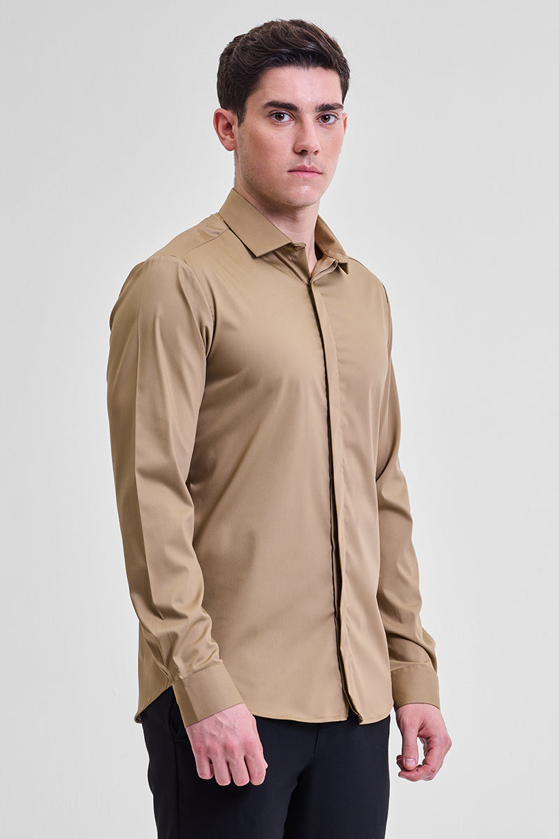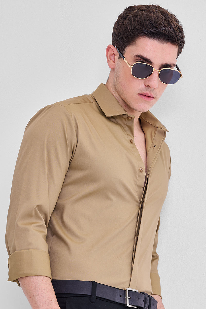 Looking through shirt styles to re-vamp your back-to-work wardrobe? This light brown plain shirt should definitely be on the shortlist. Cut for a slim fit, this shirt is a classic wardrobe staple that's guaranteed to become your go-to favorite. When you need to be at your smartest, team it with a tie.