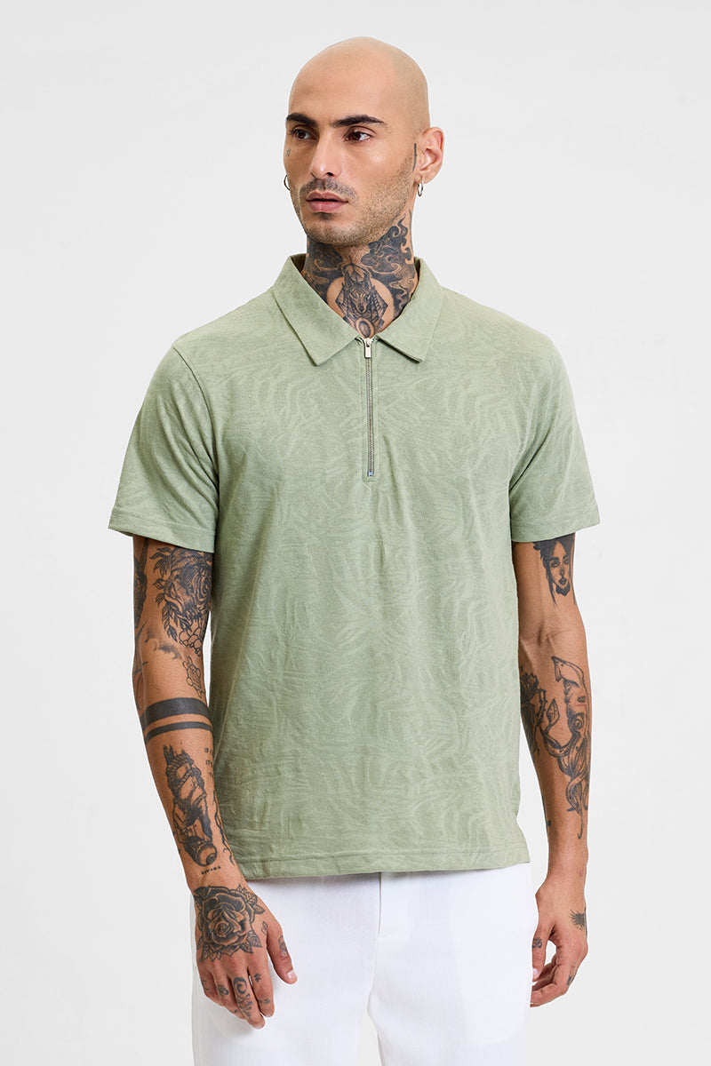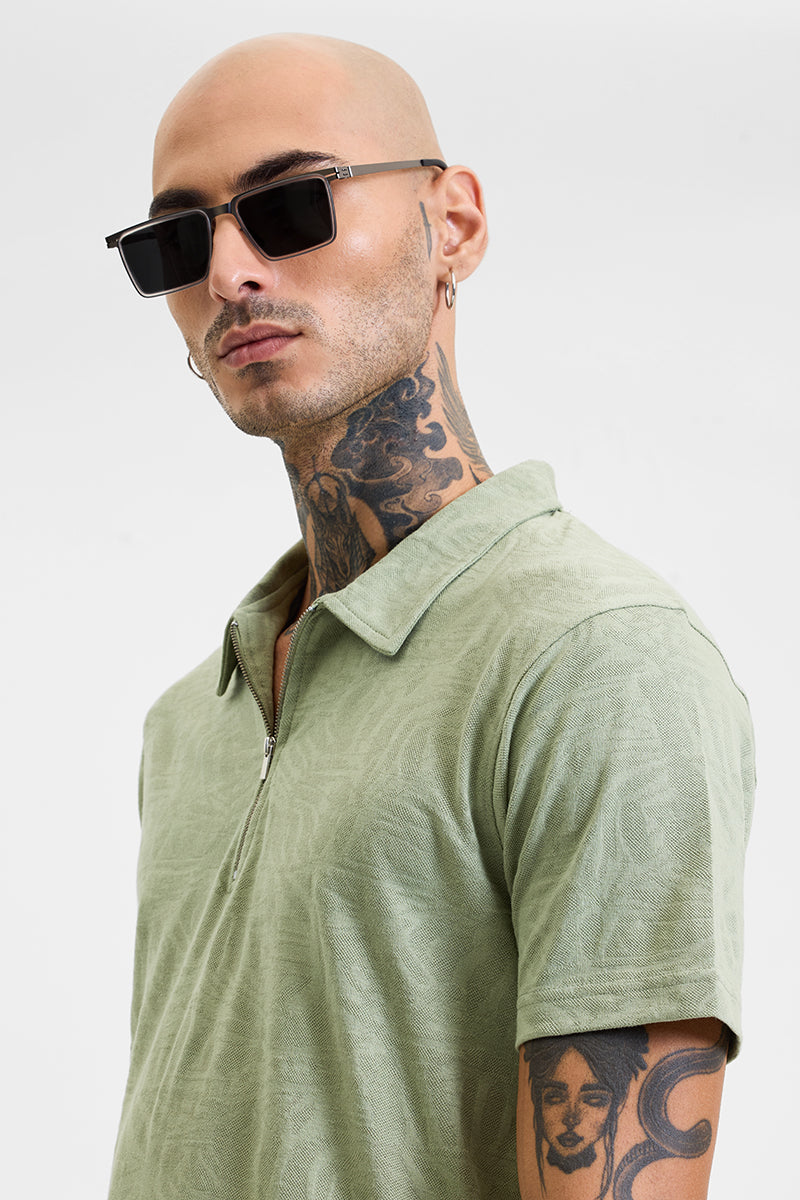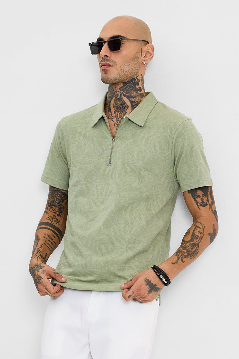 Check out this casual T-shirt from snitch. Fashionable and appealing, this slim fit T-shirt comes in a shade of light green. This versatile piece can be worn and styled for almost any occasion. It features a classic polo and half sleeve.