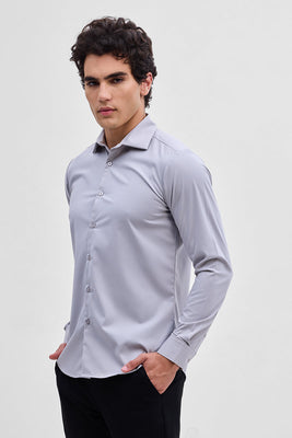 Our goal is to make workwear dressing simpler, and that's where these slim fit, shirts come in. Every man's wardrobe needs at least one go-to shirt and this light grey color classic shirt hits the bulls-eye. It looks great with or without a tie. It is sleek, stylish and comfortable with full sleeve.