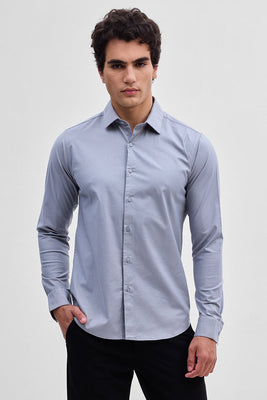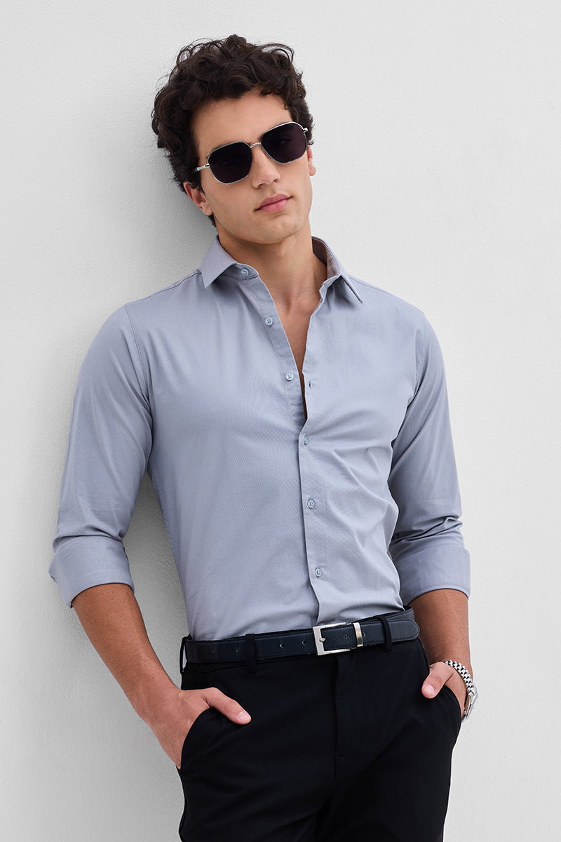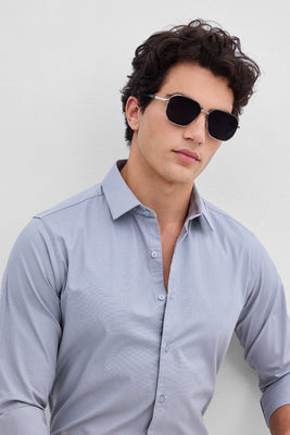 Our goal is to make workwear dressing simpler, and that's where these slim fit, shirts come in. Every man's wardrobe needs at least one go-to shirt and this light grey color classic shirt hits the bulls-eye. It looks great with or without a tie. It is sleek, stylish and comfortable with full sleeve.