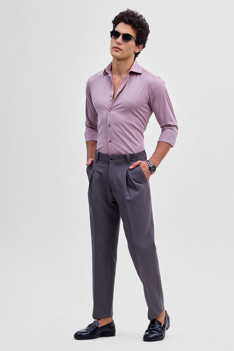 Men's work wardrobe is constantly evolving. Exude professionalism with this classic shirt from snitch in a plain pattern, lilac slim fit shirt. Right from the fabric and cut, to the stitching and buttons, whether it's for work or a dinner date, this shirt never fails to impress.