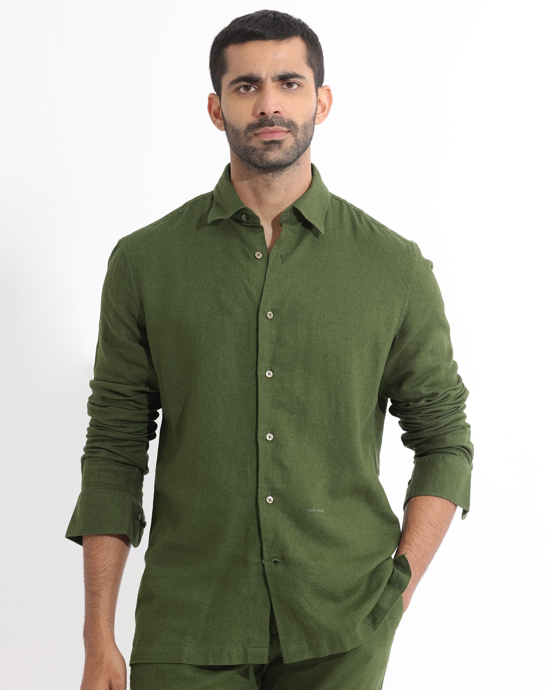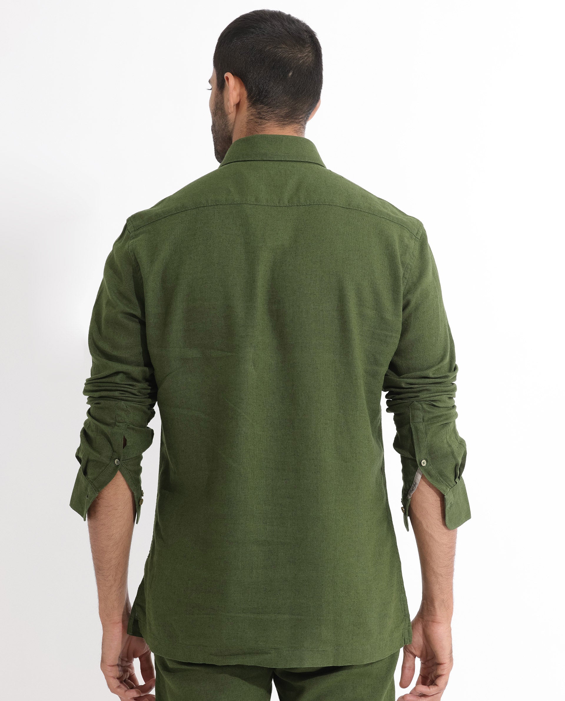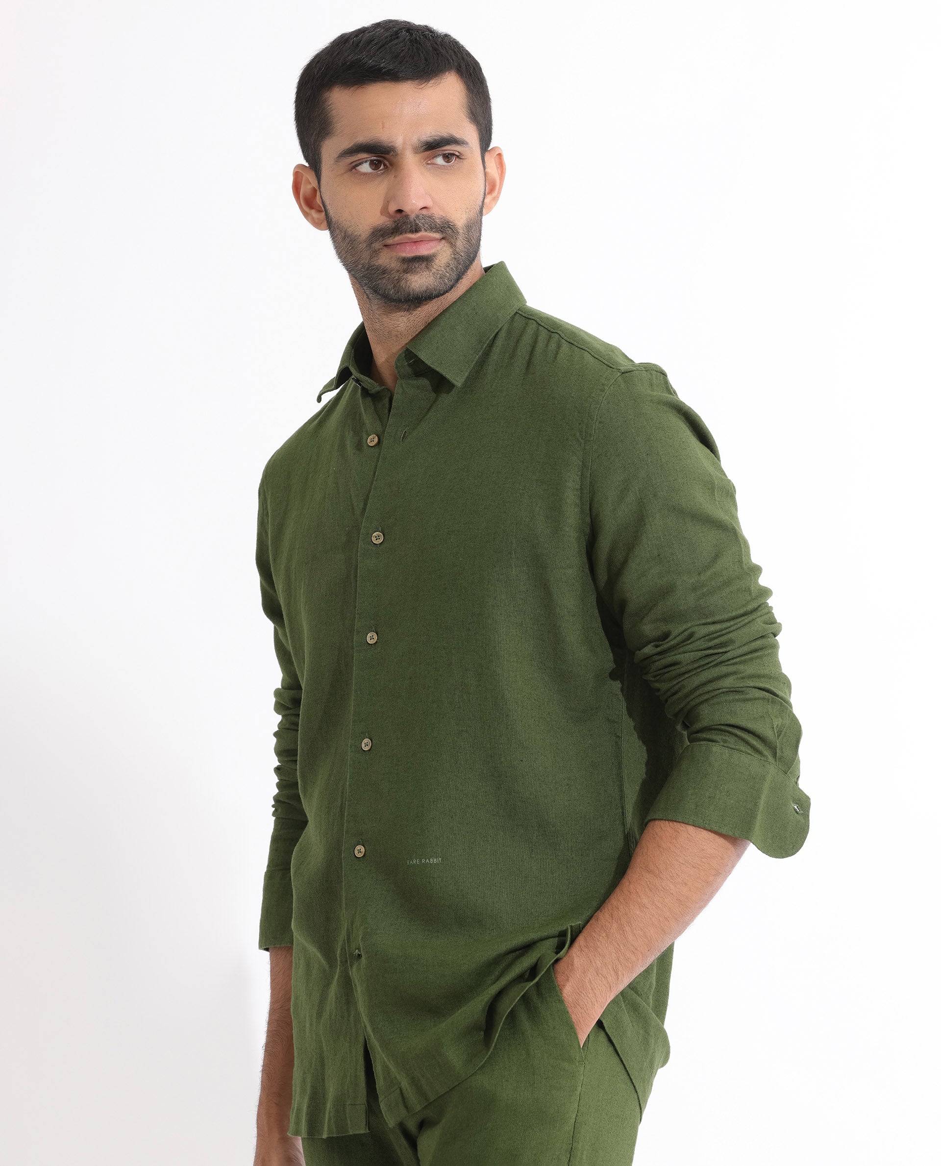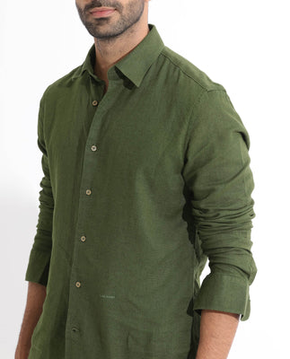Rare Rabbit Men's Lunet Olive Linen Full Sleeves Solid Shirt