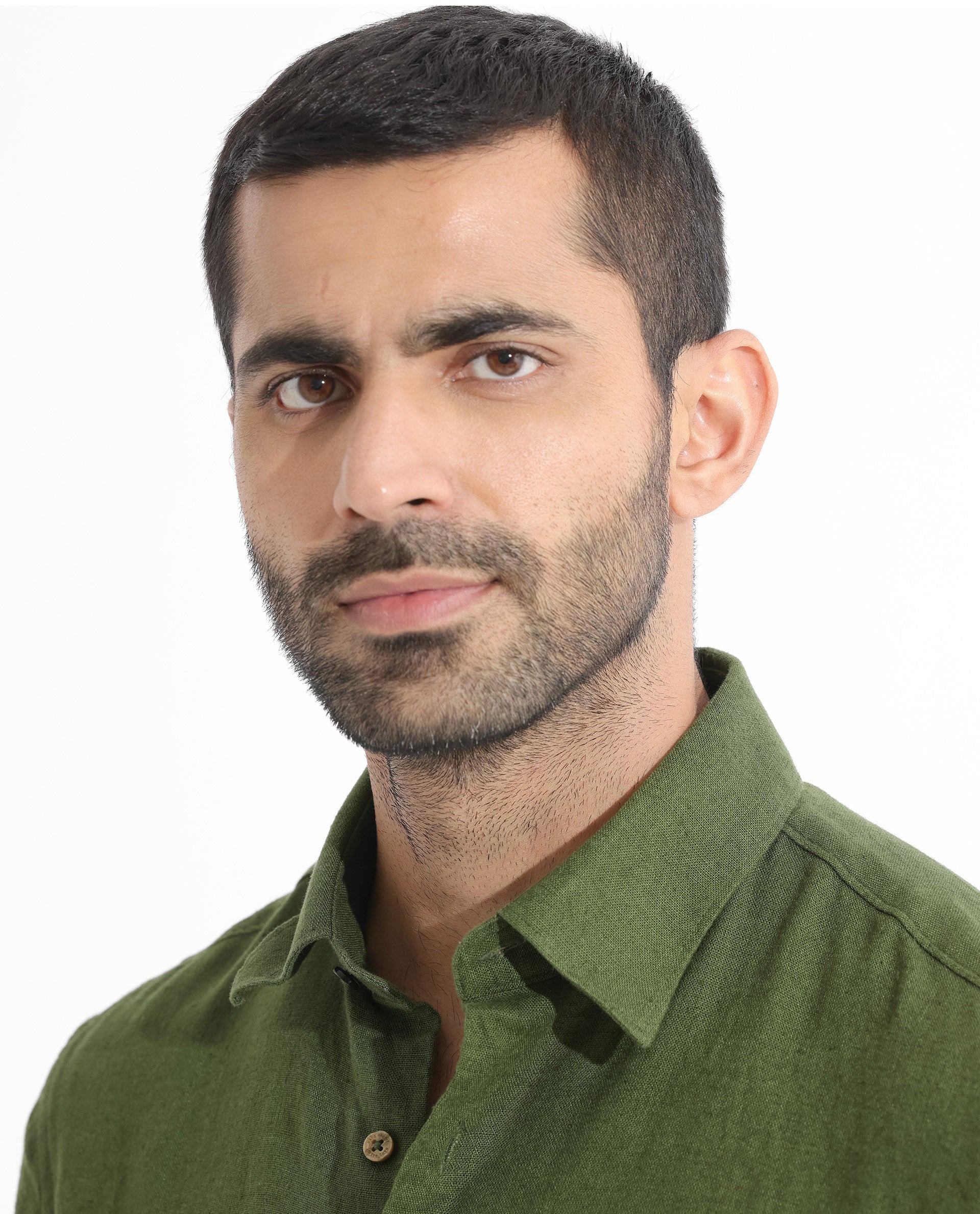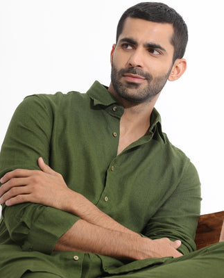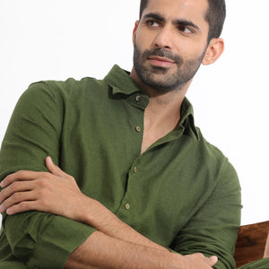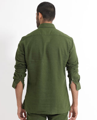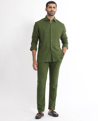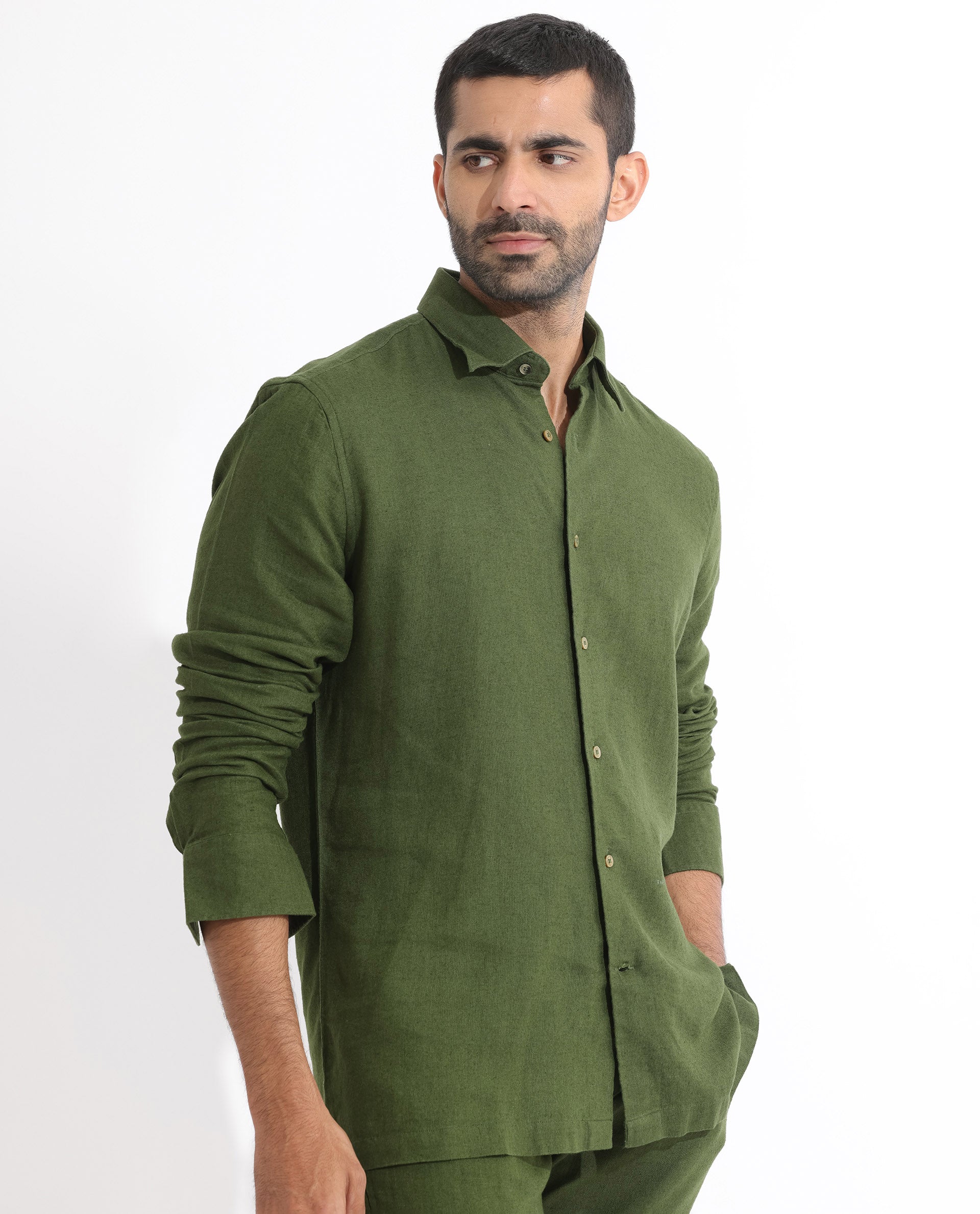Rare Rabbit Men's Lunet Olive Linen Full Sleeves Solid Shirt