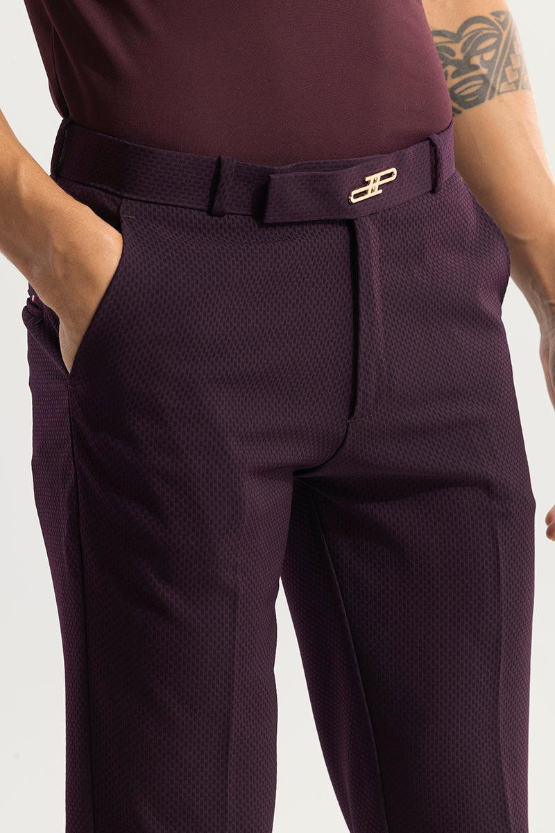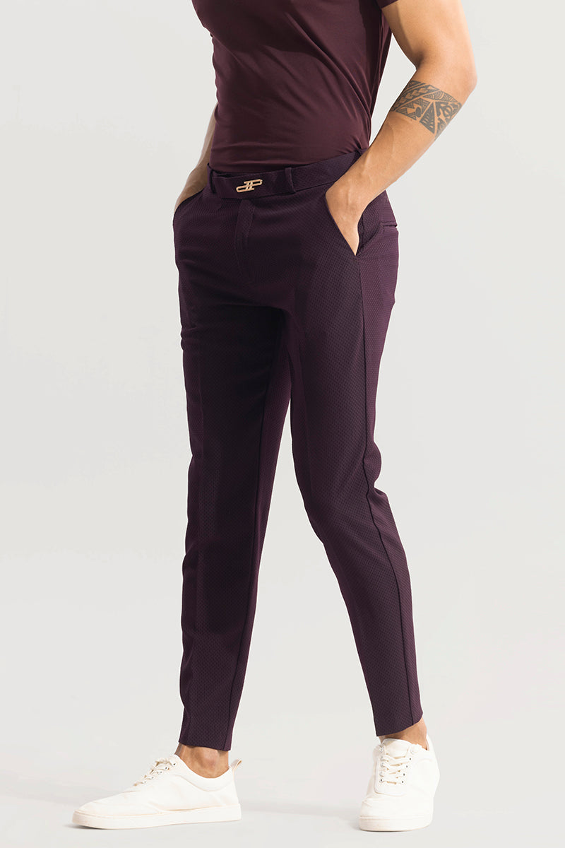 Introducing our Masonry Burgundy Trouser, a versatile and stylish addition to your wardrobe. Made with a textured fabric, these trousers add a touch of casual elegance to any outfit. Designed and crafted with precision, these trousers provide both comfort and style for any occasion.