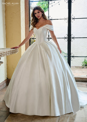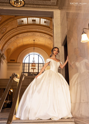 Mikado Off Shoulder Bridal Gown by Rachel Allan RB6162