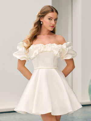 - Mikado Short Off Shoulder Bridal Dress by Adrianna Papell 45020