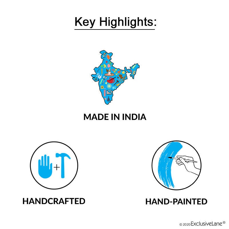 | Material | Delicately handcrafted in Teak Wood by craftspeople from the interiors of India, ‘Brass People On Teak Wood’ is a wall mount key holder, inspired from the simple life of Indian tribes and hand-embellished with detailed Warli art. Equipped with four key hooks, this key holder is finely crafted in a box frame shape with a beautiful centre panel of detailed dhokra (an age-old indigenous Indian tribal brass craft) brass human figurines and Handpainted with bright red, white and green Warli patterns. The compact design of a basic frame adorned with minimal Warli art, fine finishing of the natural wood colour and use of beautiful metal bells as accents, carries with itself a fragment of raw Indian serenity to your wall and living spaces. The Indian folk tales handcrafted with love into this elegant wall key-holder make this a functional art piece, perfect for all everyday usage, for you and your loved ones. Notes :- - Comes with 4 Hooks. - The key chain & the keys shown in the image are not included with the key holder. - As this product is handcrafted there might be a slight color or design variation, which is natural and hence makes the product unique. |