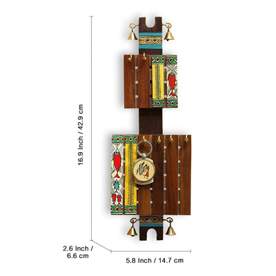 | Material | Delicately handcrafted in Sheesham & Teak Wood by craftspeople from the interiors of India, ‘In-key-genous’ is a wall mount key holder, inspired from the historic art form of Madhuban. Equipped with six key hooks, this key holder is finely crafted with two vertically arranged plank-frames that include the key hooks along with panels hand-embellished with indigenous Madhubani paintings in miniature forms depicting auspicious fish and plant motifs and additive patterns in vibrant colours, that add beautifully to the rich natural colour of the wood. The compact design of planks joint to form the holder frames, fine finishing, interesting form and the use if beautiful metal bells as accents, carries with itself a fragment of raw Indian serenity to your wall and living spaces. The Indian folk tales handcrafted with love into this elegant wall key-holder make this a functional art piece set, perfect for all everyday usage, for you and your loved ones. Notes :- - Comes with 6 Hooks. - The key chain shown image is not included with this key holder. - As this product is handcrafted there might be a slight color or design variation, which is natural and hence makes the product unique. |
