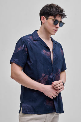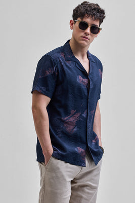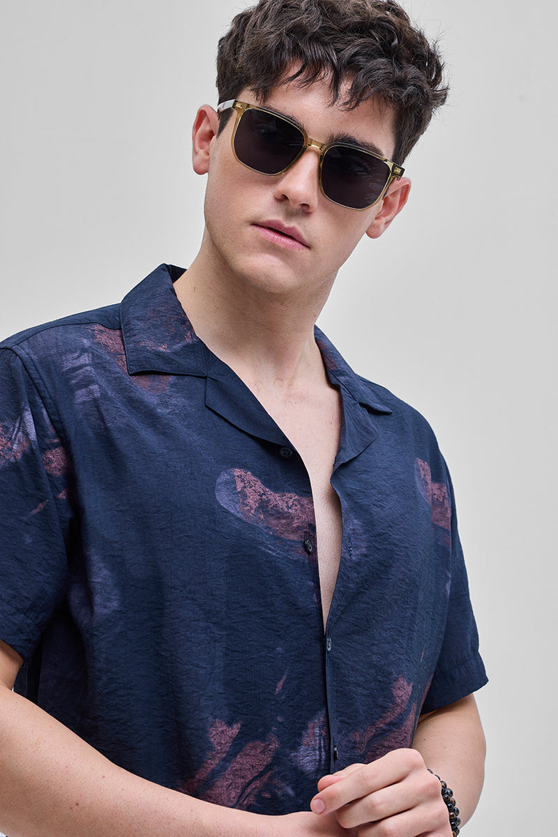 Navy Abstract Box Fit Shirt