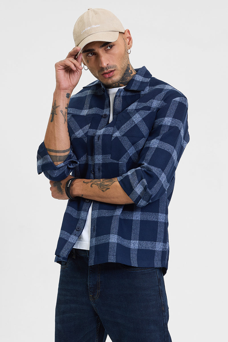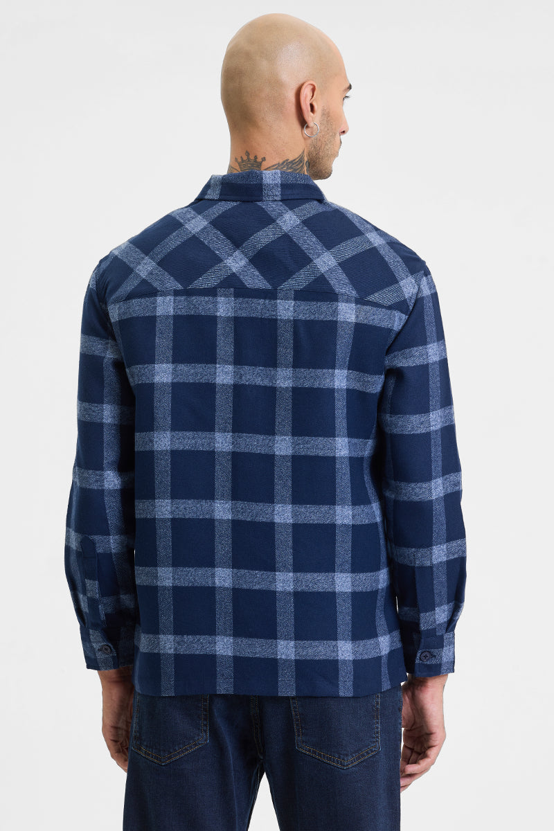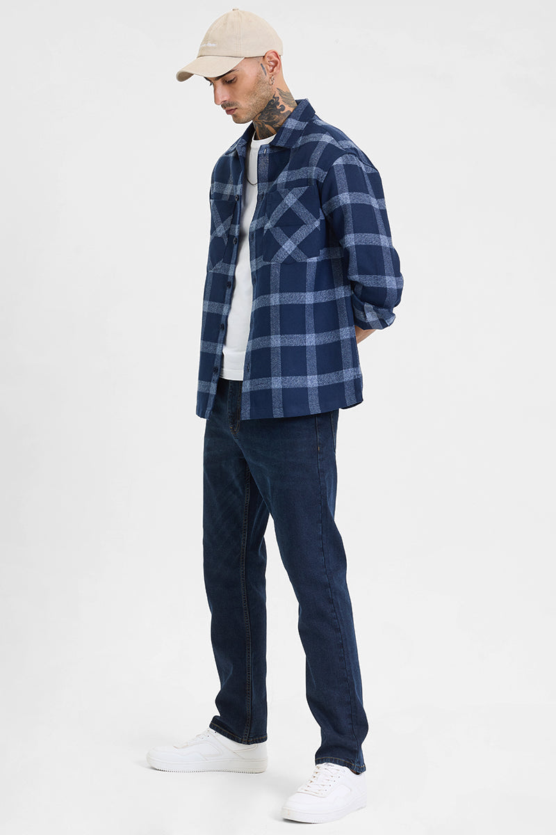 Withstand the elements with our newest navy checks patterned jacket made from 100% polyester, which skillfully strikes a balance between function and style. This snitch jacket guarantees a comfortable relaxed fit making it the ideal go-to jacket for looking on point.