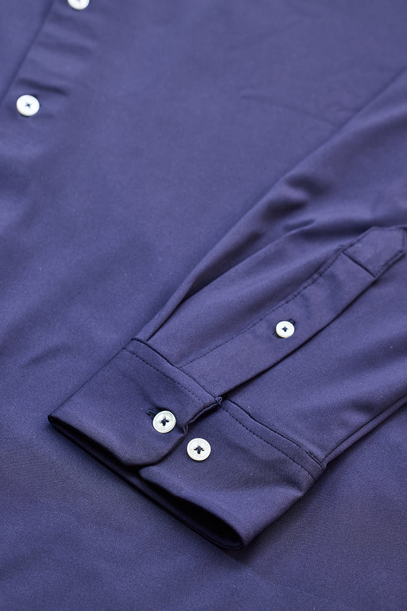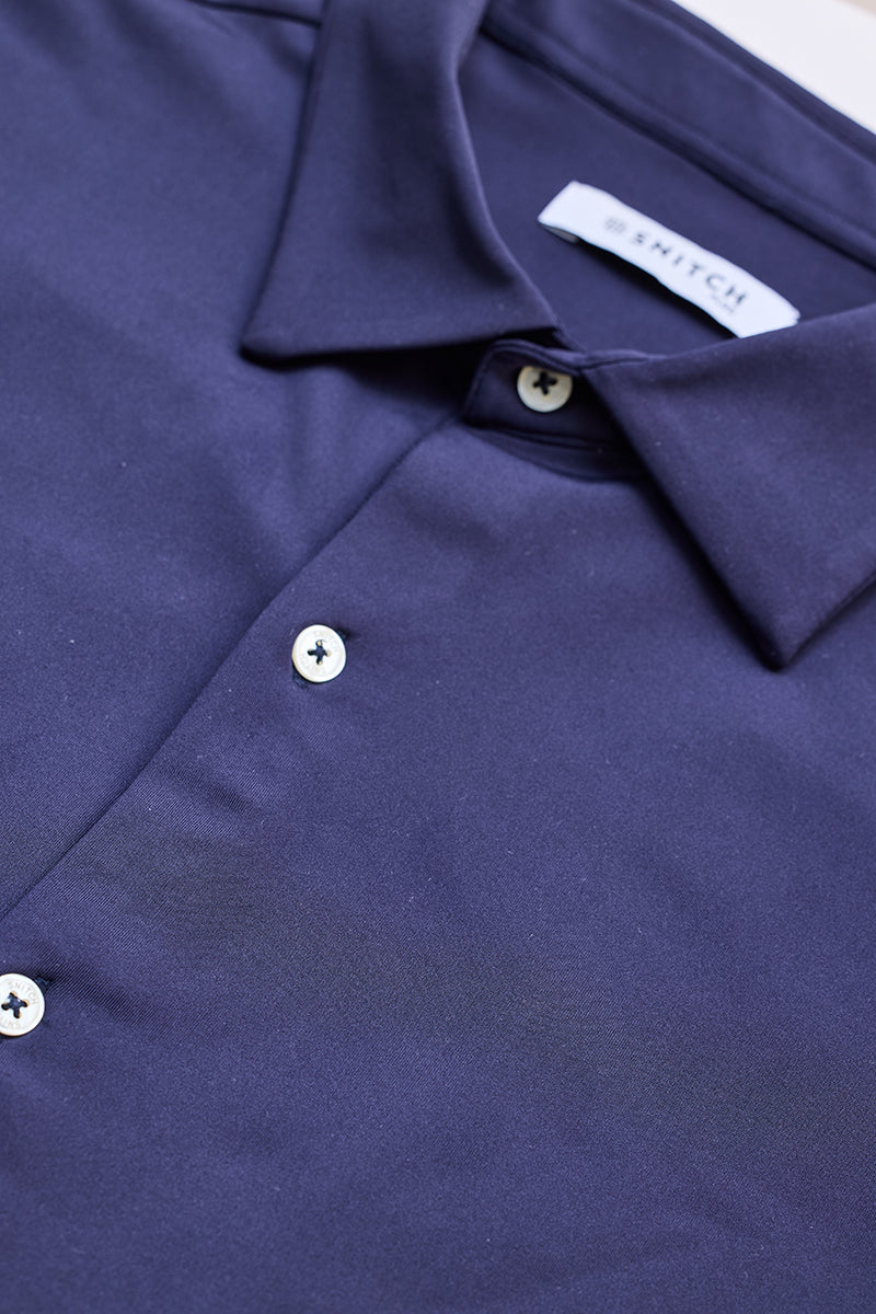 Men's work wardrobe is constantly evolving. Exude professionalism with this classic shirt from snitch in a plain pattern, navy regular fit shirt. Right from the fabric and cut, to the stitching and buttons, whether it's for work or a dinner date, this shirt never fails to impress.