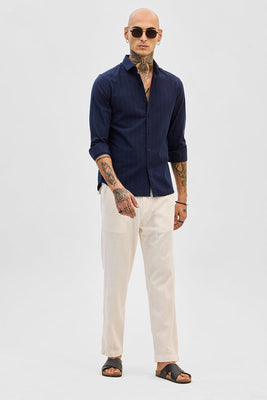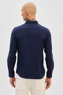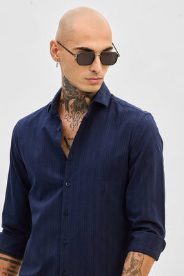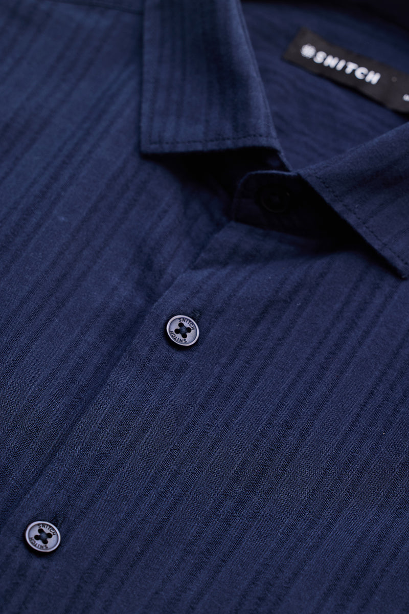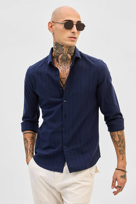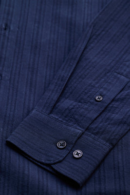 Give your everyday wardrobe an effortless appeal with this classy navy 100% cotton shirt. Designed in a slim fit, this shirt is known for its endless versatility. A look that bridges dressy and casual, with full sleeve and spread, it is perfect to wear alone or as an outer layer.