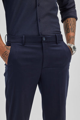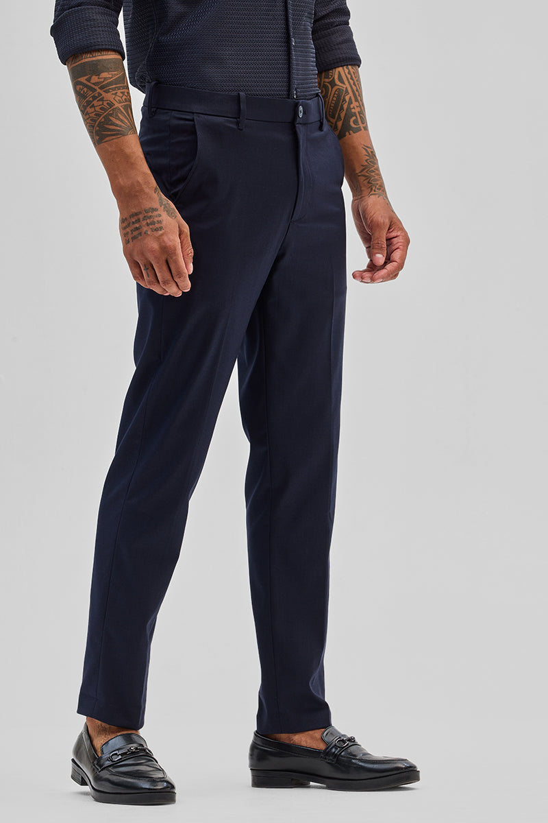 These navy classic trousers are an absolute must-have for your wardrobe. The classic tailored trousers feature belt loops that can be teamed up with your desired belt. Style it with a shirt and a matching blazer for a look that delivers!