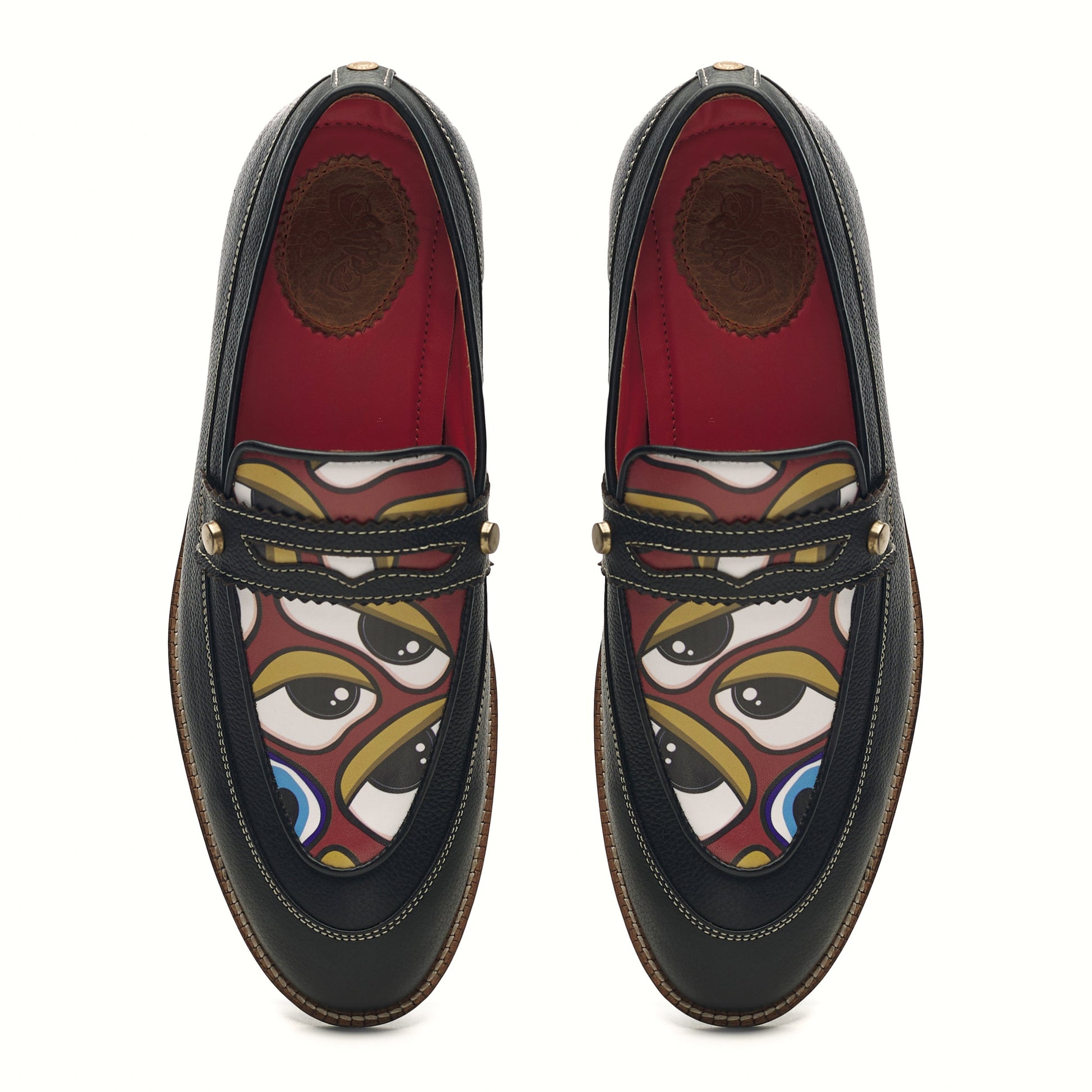 Fierce and immaculate, the ‘Nazar’ Loafers is a handcrafted blend of symbolic artistry and imagination. This pair is our most recommended piece from the collection, featuring intricate leather construction and contrast stitches throughout the form.