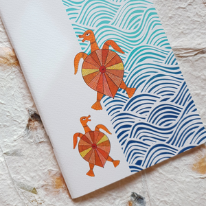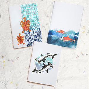 Handmade recycled paper notebook. With the intention of raising awareness about the declining marine ecosystem and the threat to these astounding marine species, we collaborated with the traditional Indian Patchitra artisan Rupsona Chitrakar to create this wonderful series of notebooks. |