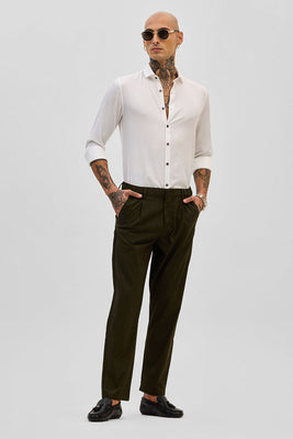 These olive classic trousers are an absolute must-have for your wardrobe. The classic tailored trousers feature belt loops that can be teamed up with your desired belt. Style it with a shirt and a matching blazer for a look that delivers!