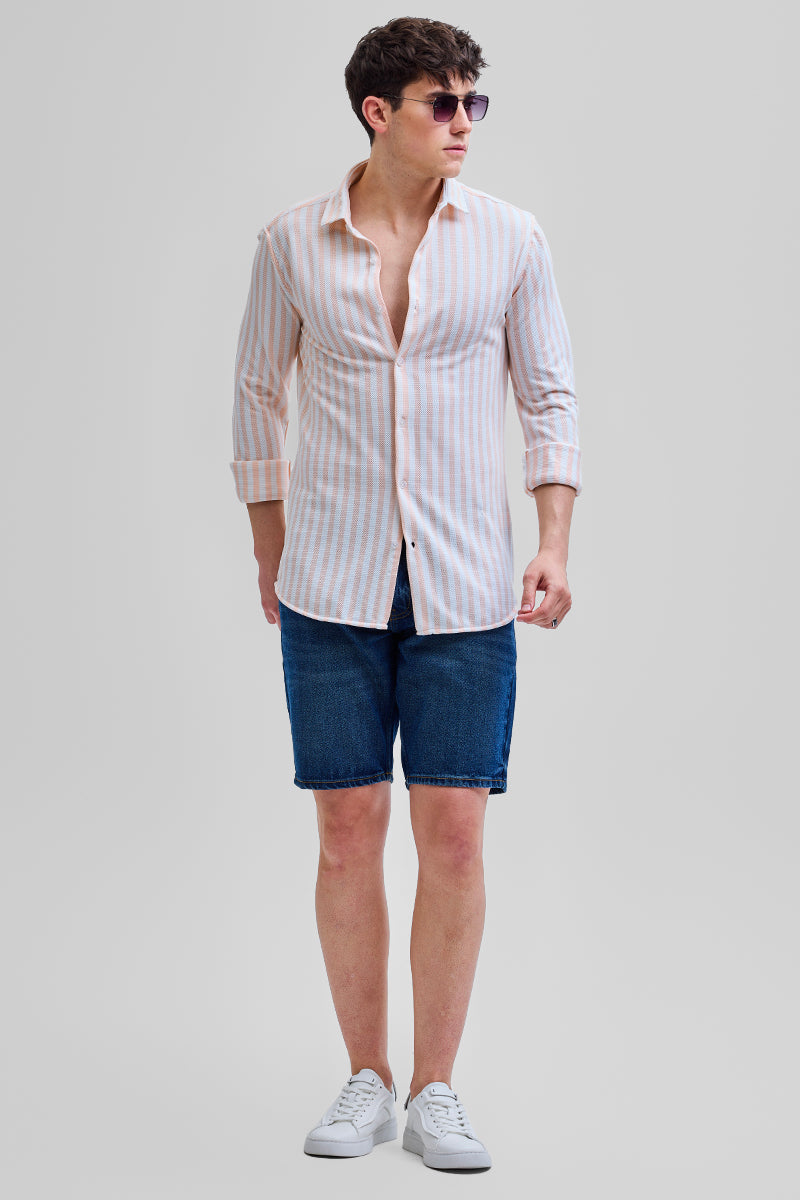 Update your everyday shirt collection with this cool and comfy slim fit full sleeve shirt from snitch. The slim fit lends you an easygoing look and with our breathable shirts in cotton poly blend, comfort is no longer reserved for the weekends.