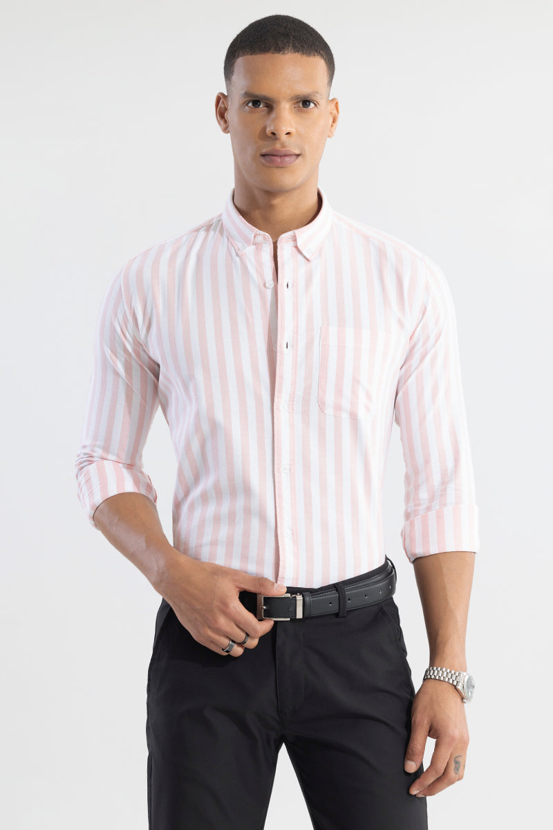 Looking for a professional and stylish shirt? Look no further than our Pinstripe Pink Shirt. With its slim fit and subtle striped design, this shirt offers a sleek and polished look. Perfect for any business setting or formal occasion.
