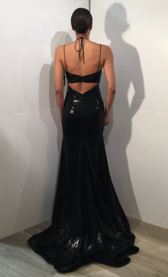 - Pleather Fitted Sleeveless Slit Gown by Jovani 43421
