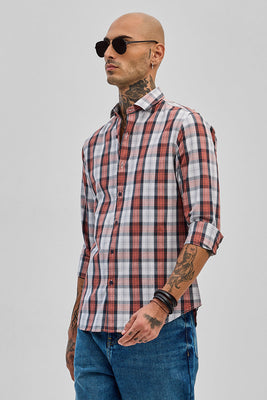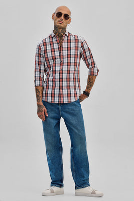 Give your everyday wardrobe an effortless appeal with this classy red 100% cotton shirt. Designed in a slim fit, this shirt is known for its endless versatility. A look that bridges dressy and casual, with full sleeve and spread, it is perfect to wear alone or as an outer layer.