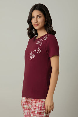Whether you're lounging, sleeping or just out and about, this stylish Scoop Neck Sleep Tee from the Cozy Comfies range is going to be your favourite go-to pick. Crafted with SleepBliss Modal body fabric, it assures superior softeness and comfort. You can up your lounge game by a notch and pair it with our shorts, capris or full length pyjama bottom from the range.