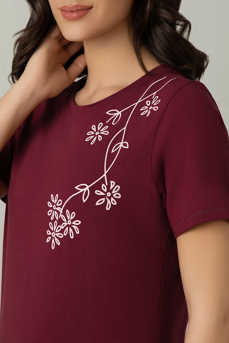 Scoop Neck Sleep Tee - Shoulder Floral Print