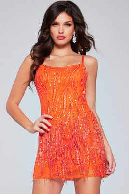 • Sequin Short Sleeveless Fringe Dress by Jovani 39628
