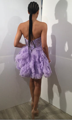 Look breathtaking in this lace bodice short strapless dress with an A-line ruffled skirt by Jovani 40628. This whimsical short dress features a strapless sweetheart neckline and a fitted corset bodice adorned with delicate lace and bead embellishments. The A-line silhouette is accentuated with a full ruffle skirt made of lightweight tulle that gives it a playful and romantic look. Perfect for any special occasion, this dress will make you feel like a fairy-tale princess.