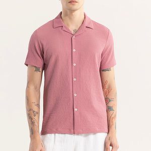 This Squashed Crush Pink Shirt combines the laid-back Cuban collar with a straight hem and half sleeve for a casual summer look. Crafted in breathable fabric for maximum comfort, this relaxed piece is perfect for outdoor wear.