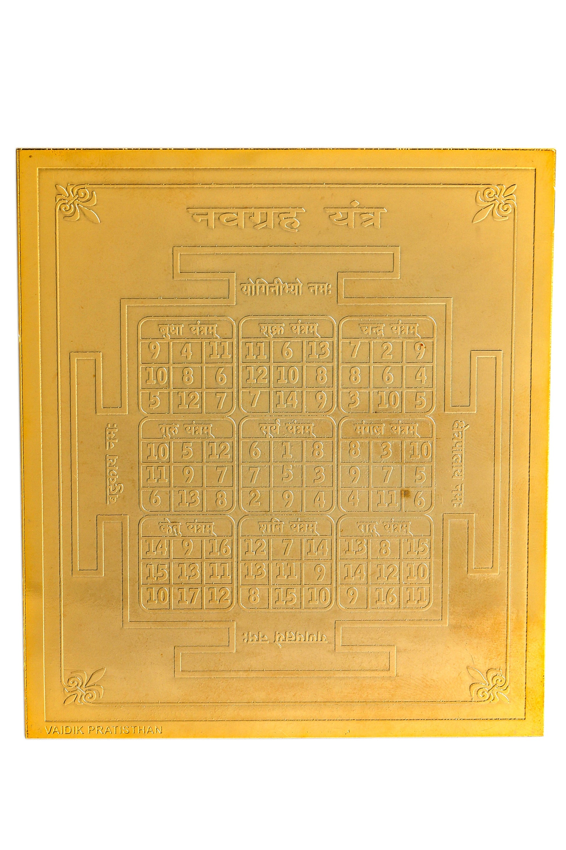 Benefits : The Navgrah Yantra is a sacred and powerful spiritual tool representing the nine celestial planets, known as the Navgrahas, in Hindu astrology. This Yantra is revered for its ability to balance the planetary influences in one's life, mitigating negative effects and enhancing positive energies. Each of the nine planets—Sun, Moon, Mars, Mercury, Jupiter, Venus, Saturn, Rahu, and Ketu—governs different aspects of life, such as health, wealth, relationships, and career. By worshipping the Navgrah Yantra, devotees seek to harmonize these planetary energies, ensuring overall well-being and success. It is believed to provide protection from malefic planetary transits, reduce obstacles, and bring about prosperity, peace, and happiness. The Navgrah Yantra is often used in rituals and meditation to invoke the blessings of the planets, promote spiritual growth, and achieve a balanced and fulfilling life. Placing this Yantra in homes or places of worship is thought to attract positive vibrations, enhance personal and professional success, and foster a harmonious environment.