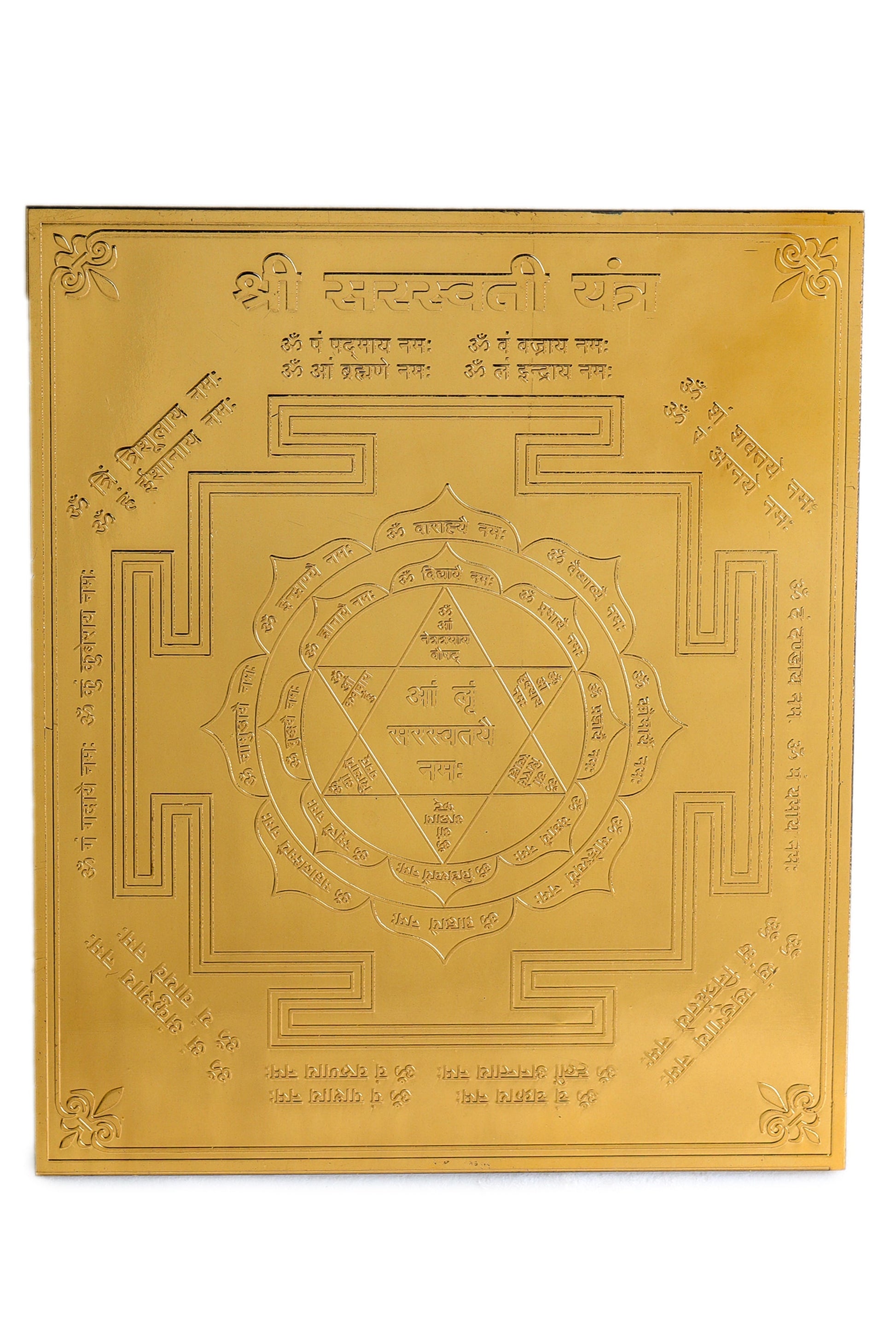 Benefits : The Saraswati Yantra is a sacred geometric tool dedicated to Goddess Saraswati, the Hindu deity of knowledge, wisdom, arts, and learning. This Yantra is revered for its power to enhance intellectual abilities, creativity, and academic success. Devotees believe that worshipping the Saraswati Yantra can dispel ignorance, sharpen memory, and improve concentration, making it especially beneficial for students, artists, writers, and scholars. It is also thought to foster eloquence, effective communication, and the development of artistic skills. By meditating on and regularly worshipping this Yantra, individuals seek to invoke the blessings of Goddess Saraswati, gaining her divine guidance in their educational and creative pursuits. Placing the Saraswati Yantra in homes, study areas, or places of learning is believed to create an environment imbued with positive energies, intellectual growth, and spiritual enlightenment.