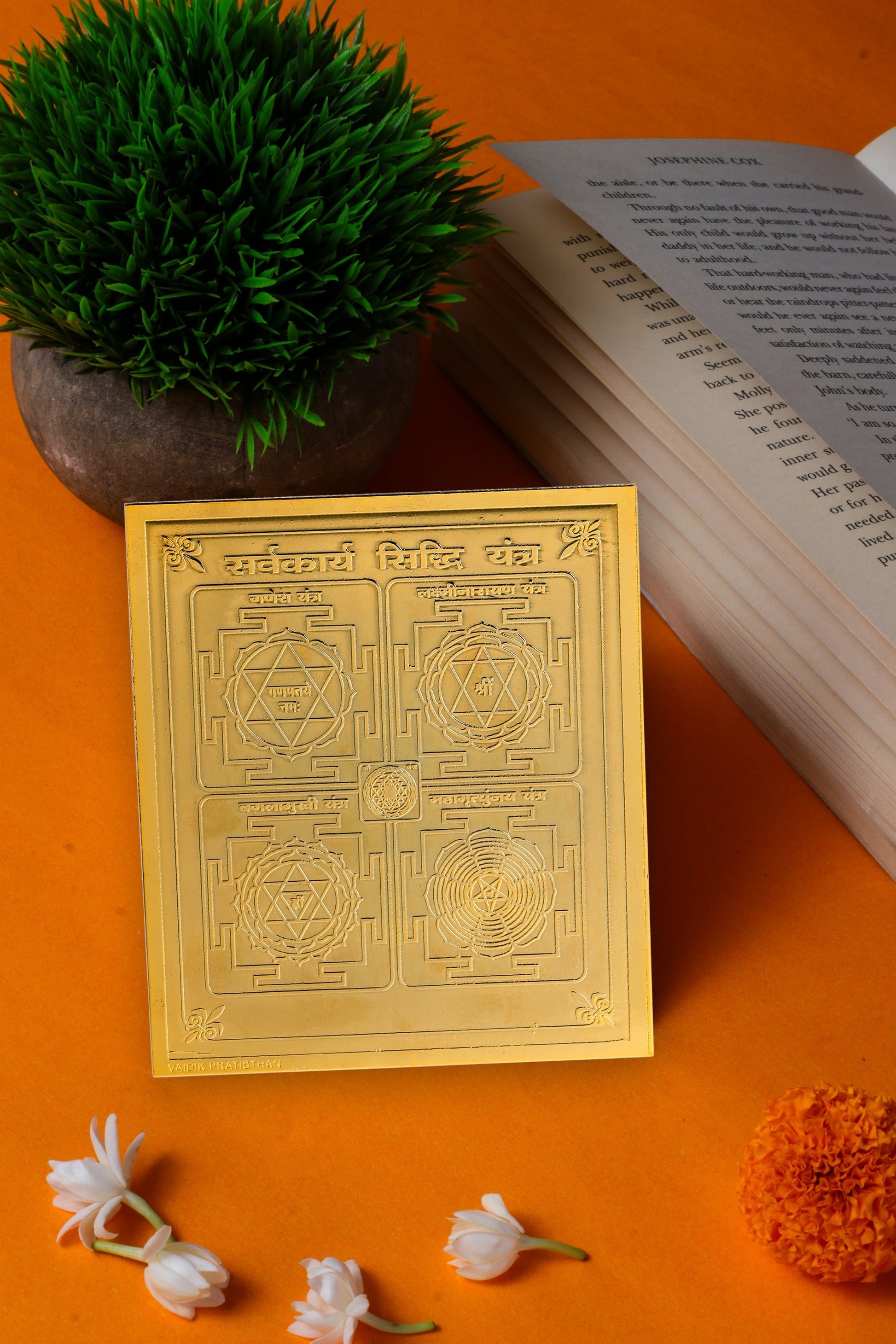 Benefits : Sarvakarya Siddhi Yantra in homes or workplaces is said to create an aura of positivity and success, ensuring that all efforts are met with favorable outcomes and fostering an environment of overall well-being and progress.