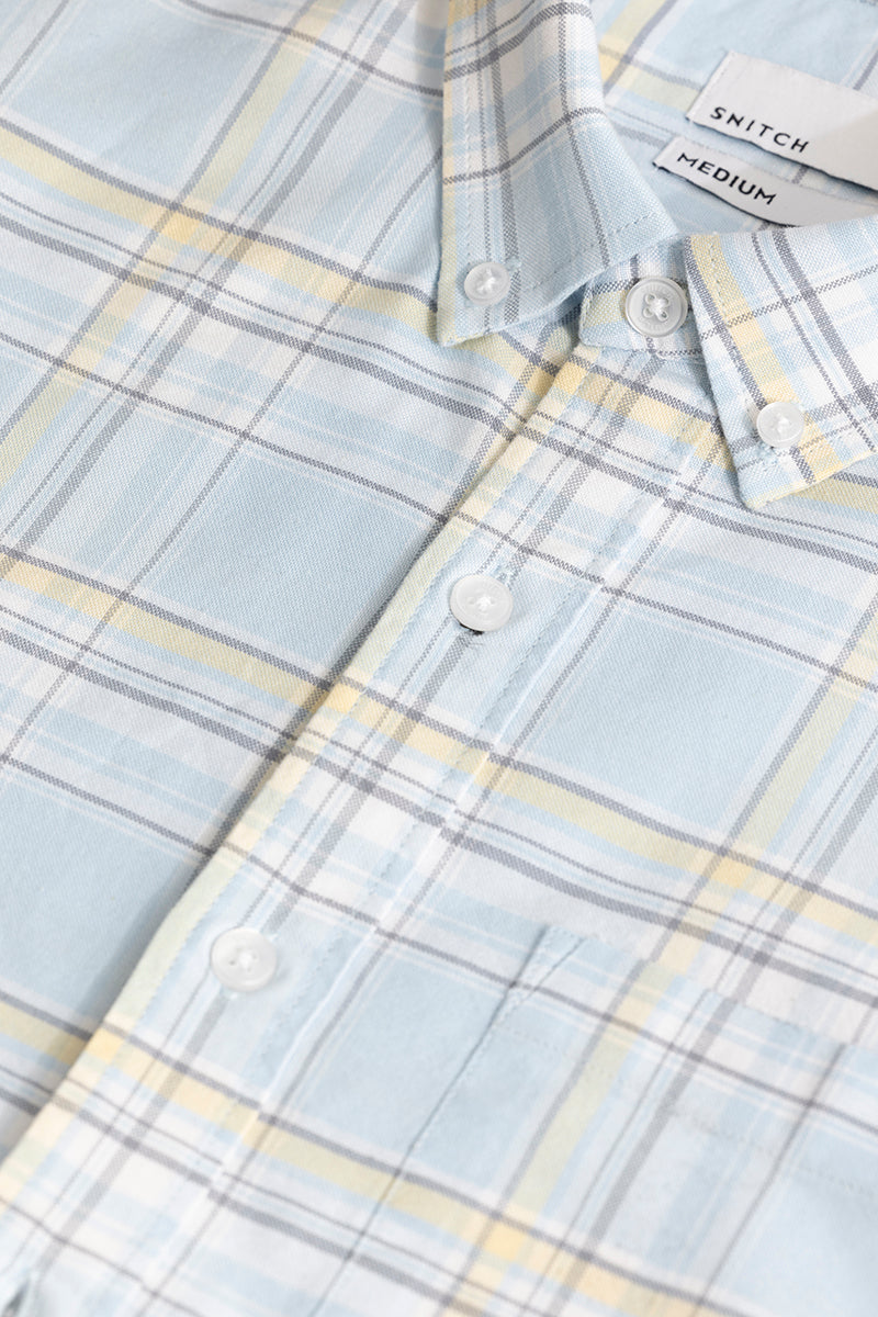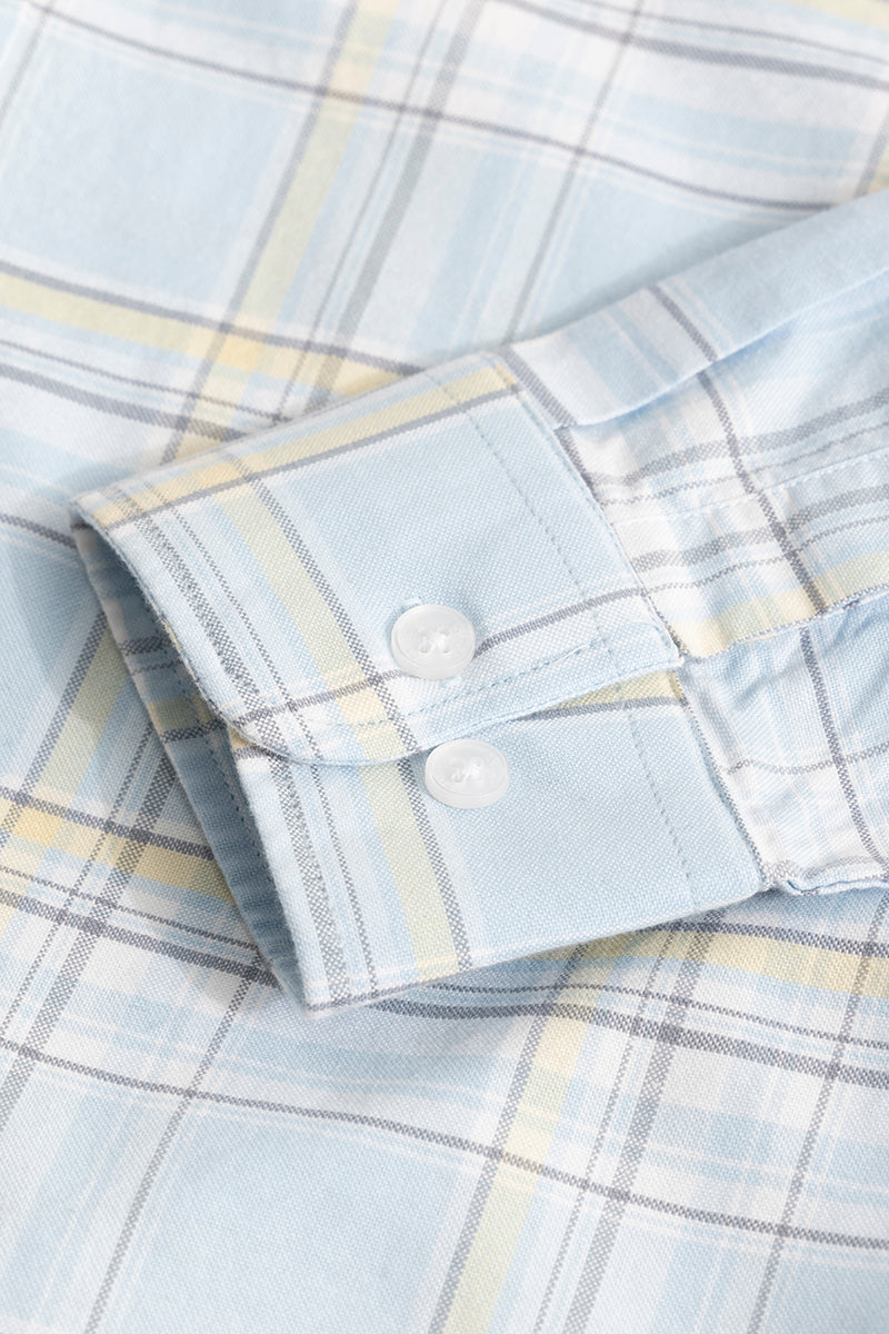 Unleash your adventurous side with our Tartan Matrix Sky Blue Checks Shirt! This casual shirt features a unique checks Pattern, perfect for those who like to stand out. Make a bold statement and add some excitement to your wardrobe!