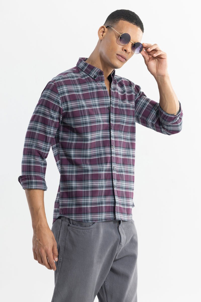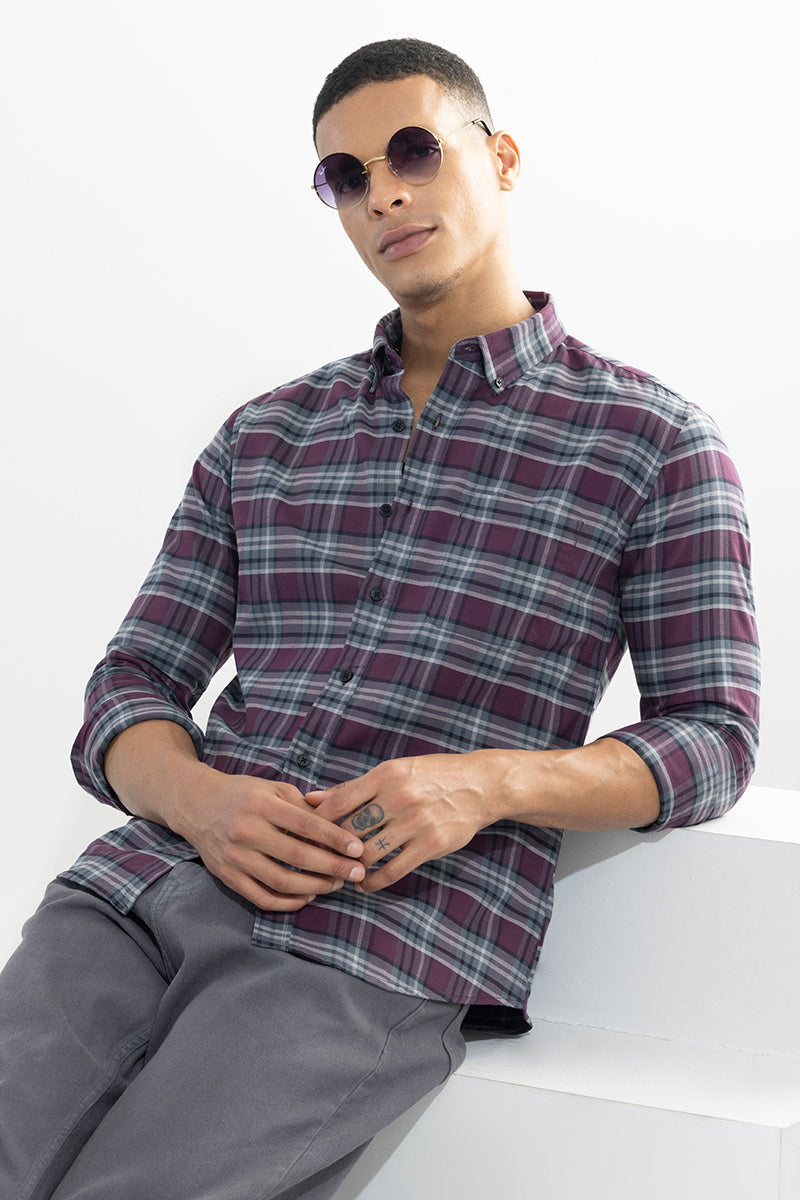 Unleash your adventurous side with our Tartan Twist Purple Checks Shirt! This casual shirt features a unique twist on traditional checks, perfect for those who like to stand out. Make a bold statement and add some excitement to your wardrobe!