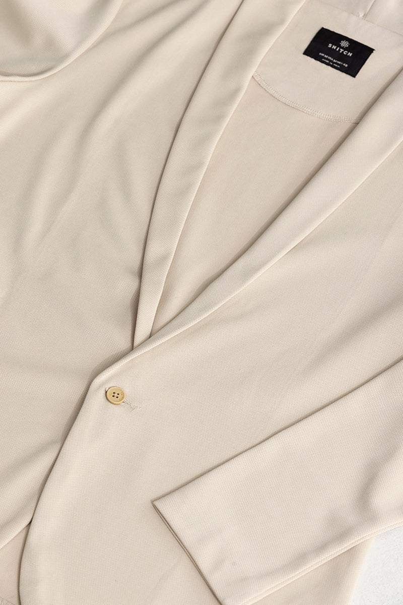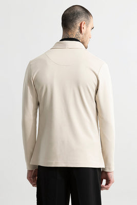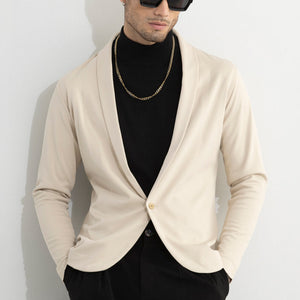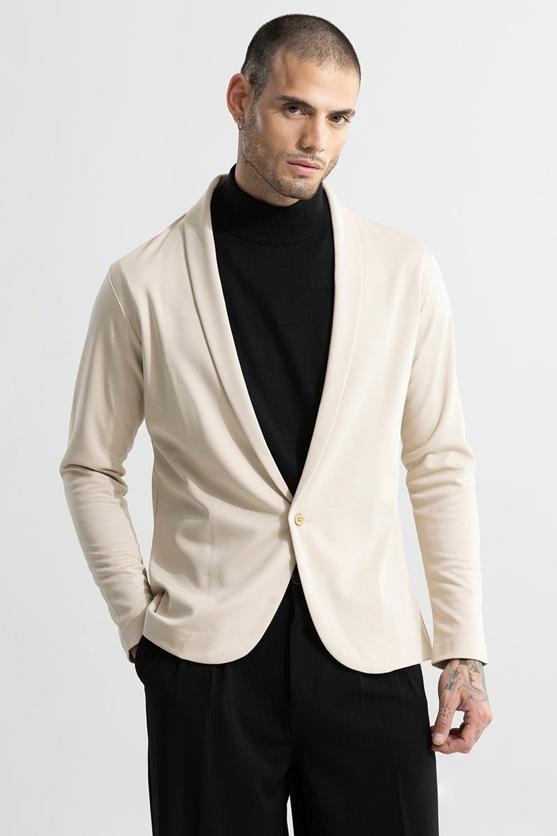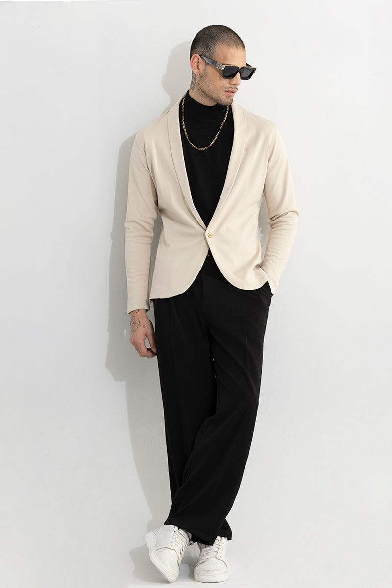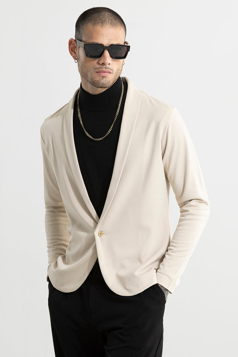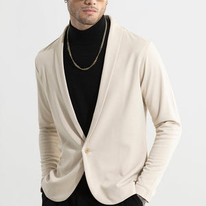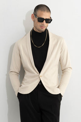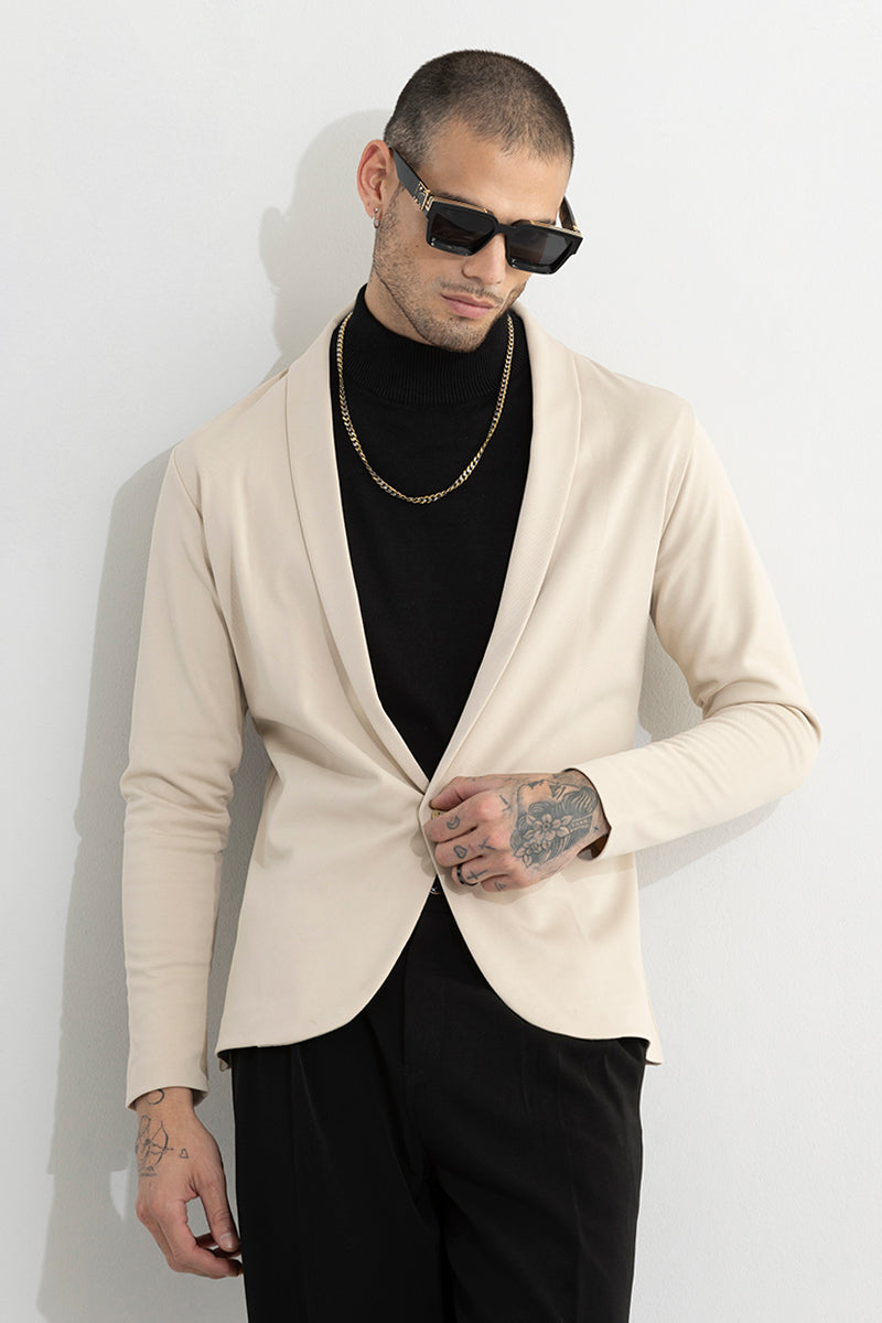 Elevate your wardrobe with our Tensile Beige Light Weight Blazer. This chic and stylish blazer-styled cardigan is not only comfortable and stretchable but also the perfect choice for any party attire. Make a statement with this elegant piece.