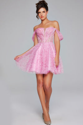 • Tulle Short Off Shoulder A-line Dress by Jovani 38000