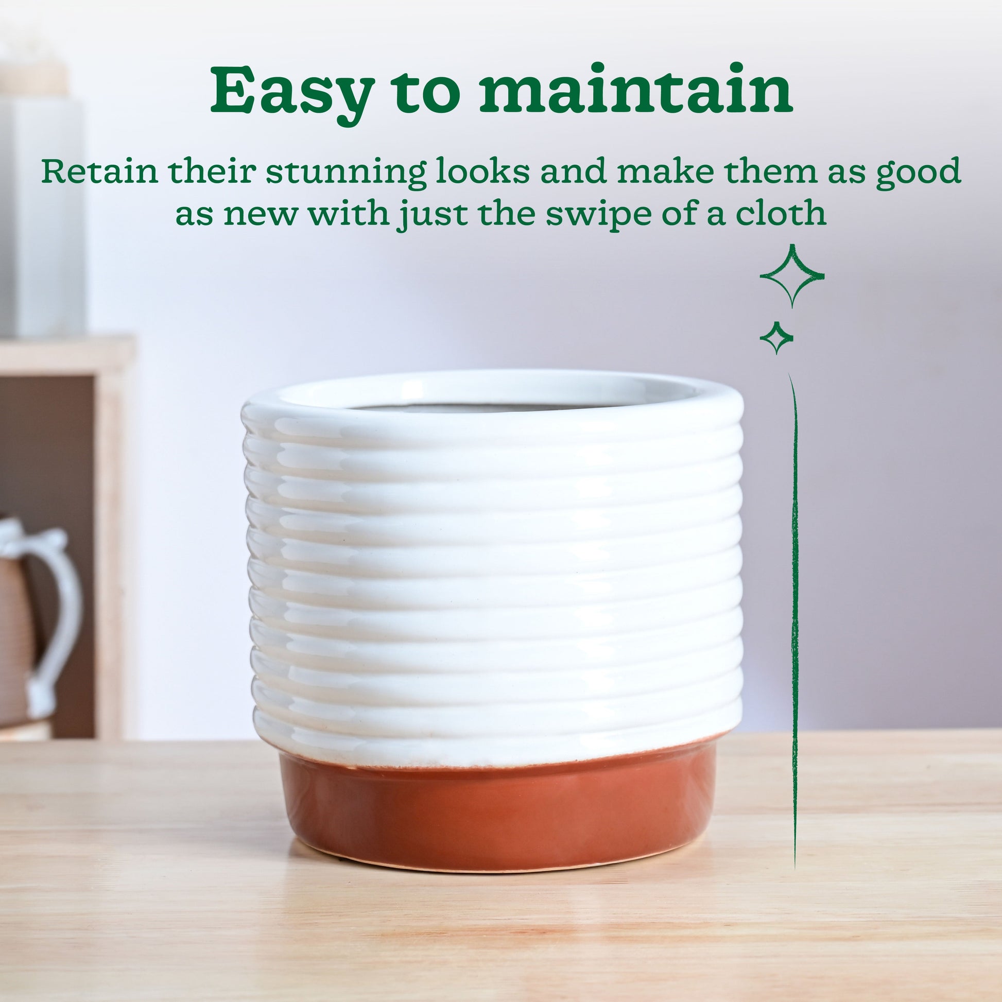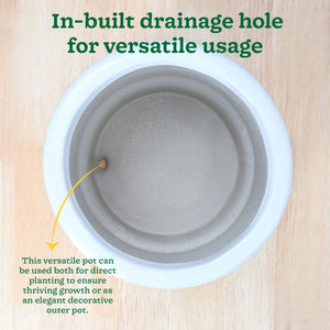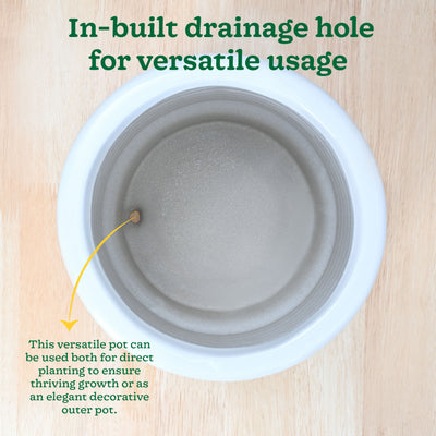 The stunning ceramic planters are hand-crafted with the finest clay, locally sourced from Hyderabad and Andhra Pradesh. These beautiful planters are built to last and promise to stay with your plants for more than 20 years without fading, chipping or losing their charm. The ceramic is skillfully baked and vitrified at 1200°C, giving it a stronger built and a longer-lasting life. The classic, evergreen designs of these planters gives your home a timless elegance and a wonderful charm. With an in-built drainage hole for adequate drainage, these versatile planters can also be used as pots and can be placed anywhere throughout your home. Their beautiful looks are also easy to maintain no matter how dirty the planter gets. Just the swpie of a damp cloth and your planter will be as good as new. Innovative brilliance has never looked better!