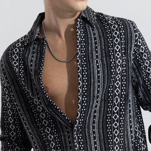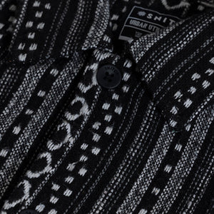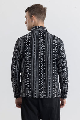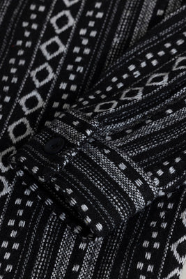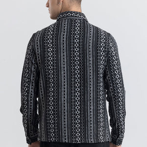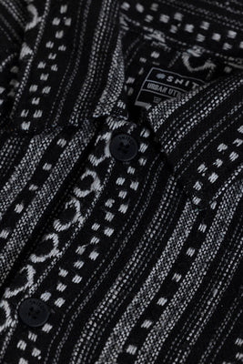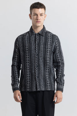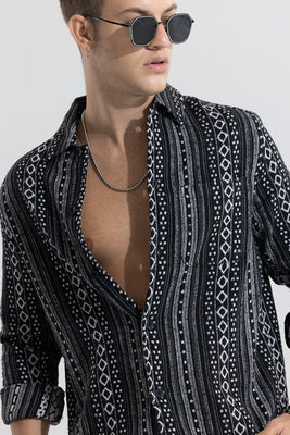 Expertly designed to elevate your wardrobe, the Verdant Line Black Shirt offers a sleek and stylish look. Featuring full sleeves and a convenient front pocket on the chest, this shirt is both functional and fashionable. The straight hem and unique design provide a modern touch, making it a versatile choice for any occasion.