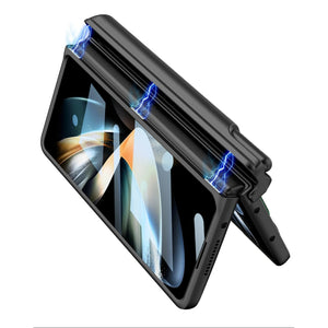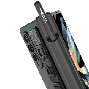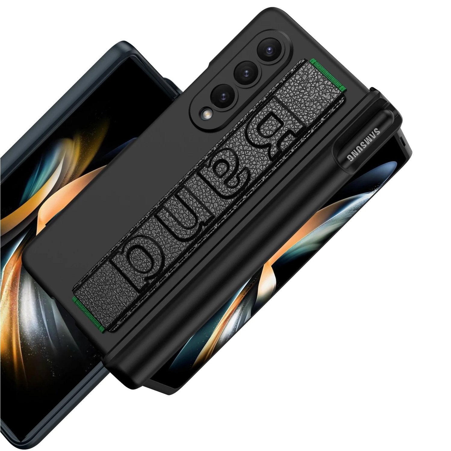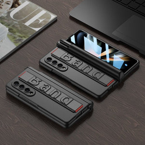 Introducing the "Warrior Shield Magnetic Hinge Pen Holder Wristband Case" designed exclusively for Samsung devices. This innovative accessory is more than just a protective cover – it's a functional masterpiece tailored for the modern warrior who values both style and efficiency.