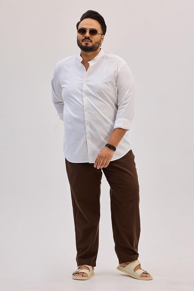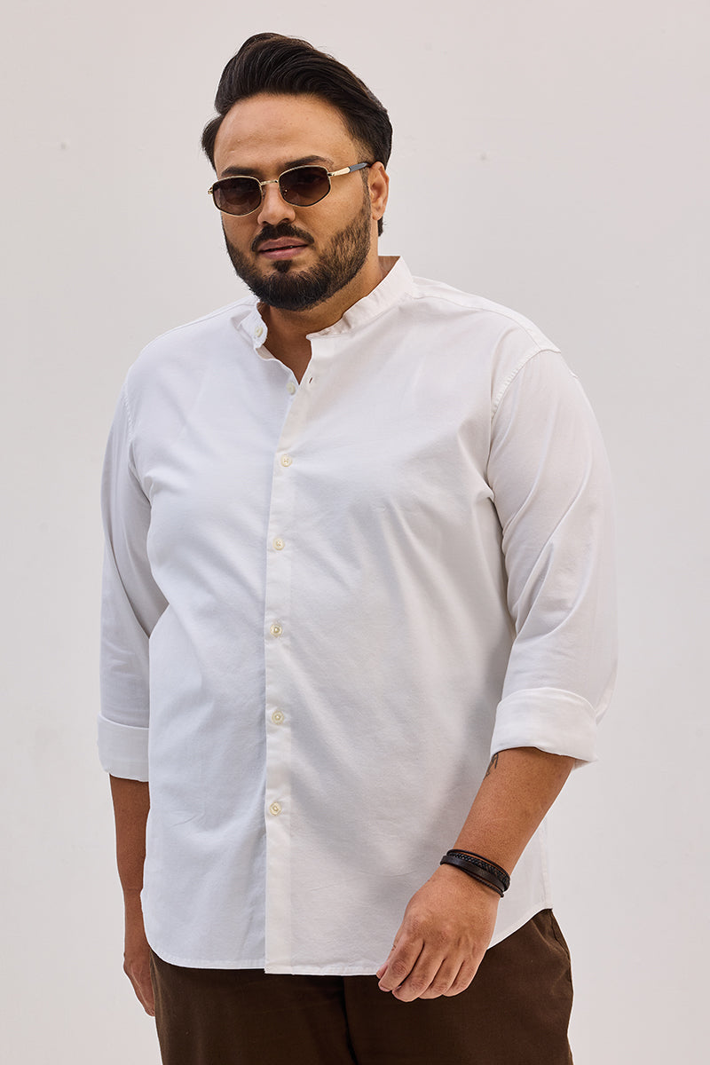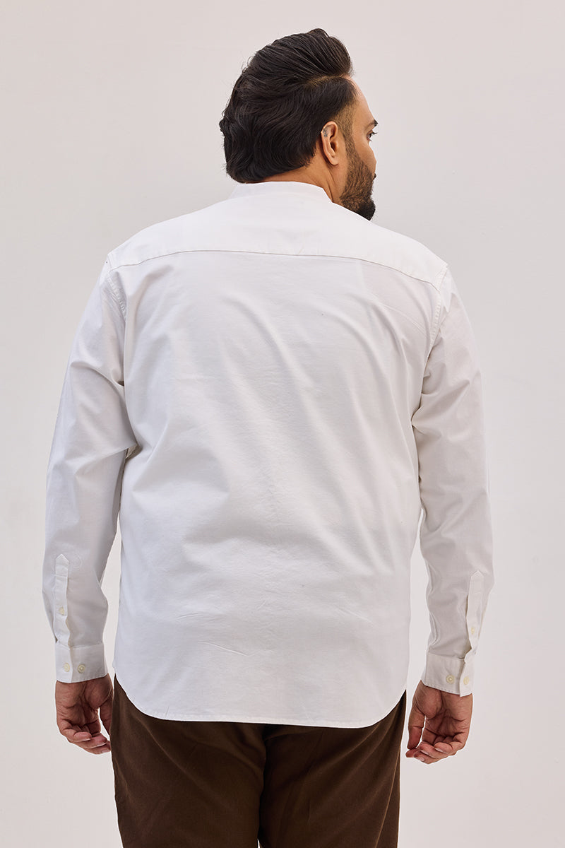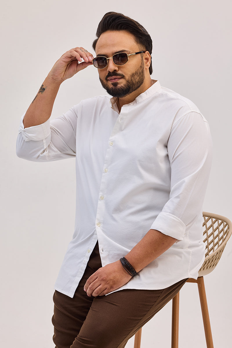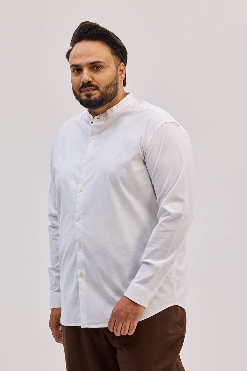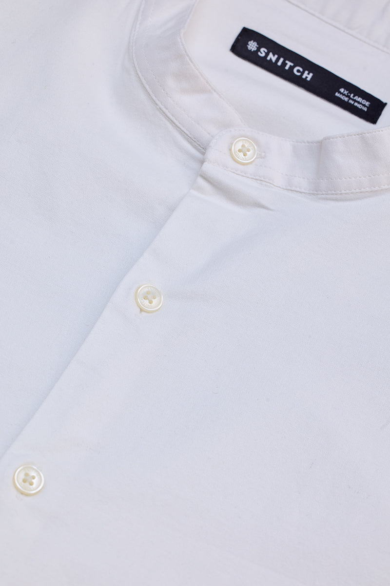 Give your everyday wardrobe an effortless appeal with this classy white 96.9% cotton,3.1% elastane shirt. Designed in a regular fit, this shirt is known for its endless versatility. A look that bridges dressy and casual, with full sleeve and Mandarin, it is perfect to wear alone or as an outer layer.