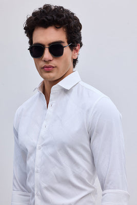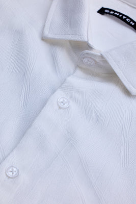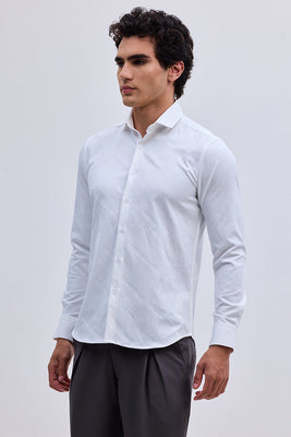 Give a majestic lift to your look with this white self-design pattern shirt. The shirt is crafted from fine 100% polyester. It is a versatile staple and great for teaming with jeans for a more casual look or smartening up with a classic pair of chinos.