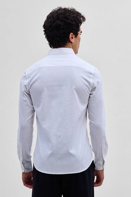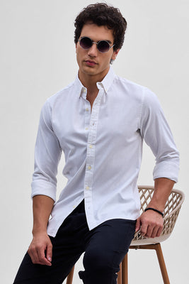 Give a majestic lift to your look with this white plain pattern shirt. The shirt is crafted from fine 70.1% polyester,29.9% viscose. It is a versatile staple and great for teaming with jeans for a more casual look or smartening up with a classic pair of chinos.