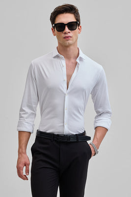 Our goal is to make workwear dressing simpler, and that's where these slim fit fit, shirts come in. Every man's wardrobe needs at least one go-to shirt and this white color classic shirt hits the bulls-eye. It looks great with or without a tie. It is sleek, stylish and comfortable with full sleeve sleeve.