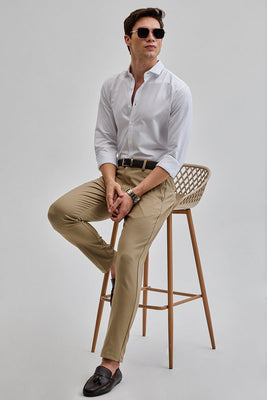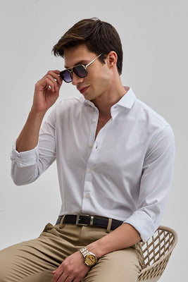 This formal shirt ensures delicate balance while choosing fit and plain pattern that works best for you. This off white color 53% polyester, 47% cotton shirt when paired up with pants, give you a professional fashion look and can add a fresh essence to your outfit.