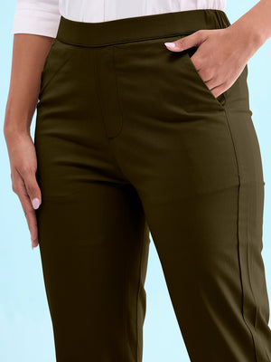 Go from ethnic to Formal look in a jiffy with the Solid Dark Olive Chinos Trousers Made from Cotton & Spandex it has a elasticised waistband, a slant pocket.